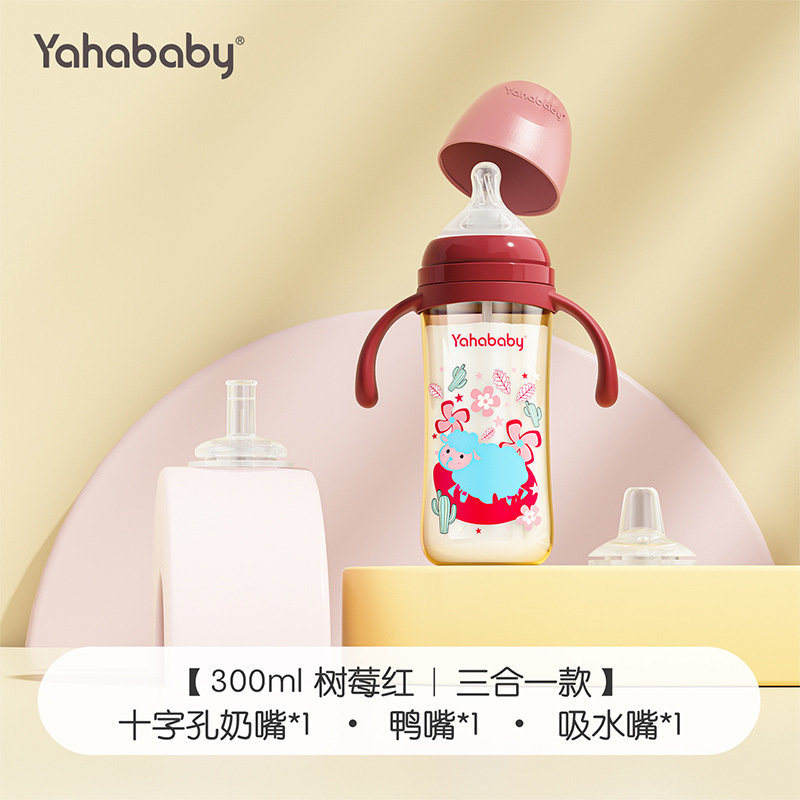 Yahababy 塗装された高ホウケイ酸ガラス哺乳瓶新生児哺乳瓶模造母乳抗疝痛高温滅菌