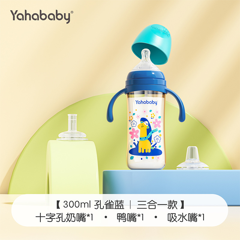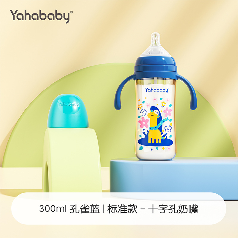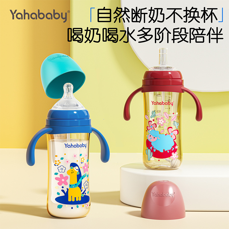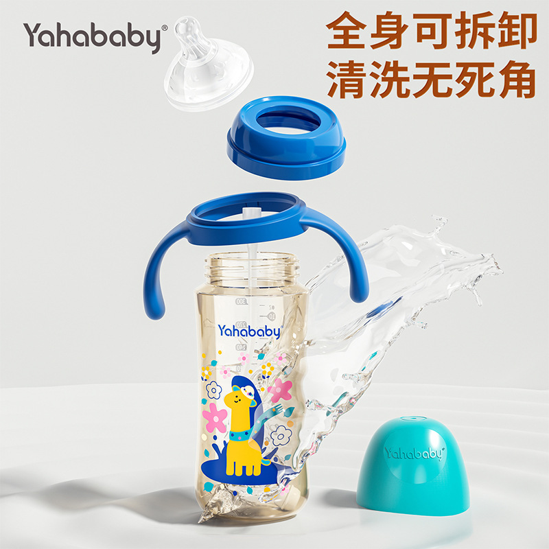 Yahababy 塗装されたロングボトル 落下防止、ミルク防止、窒息防止、滅菌漫画ボトル オリジナル本物の新生児