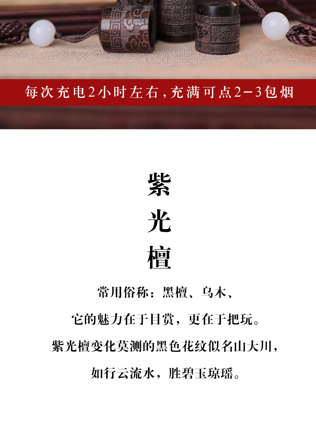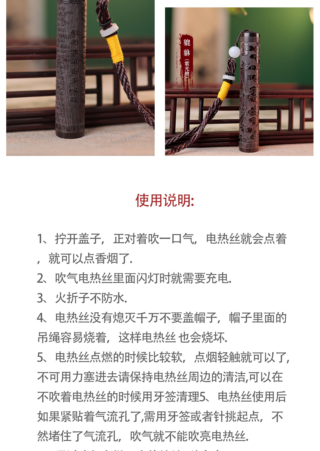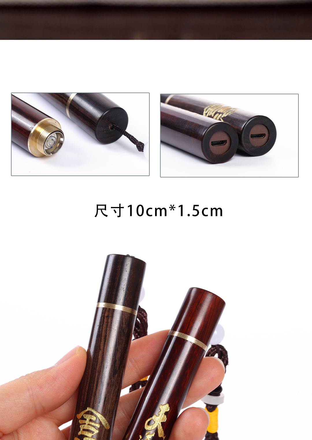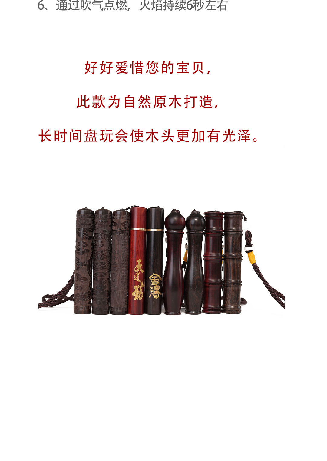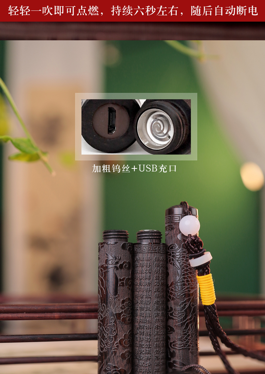 檀木打火机紫光檀火折子古代点烟器个性充电式吹气感应防风打火机