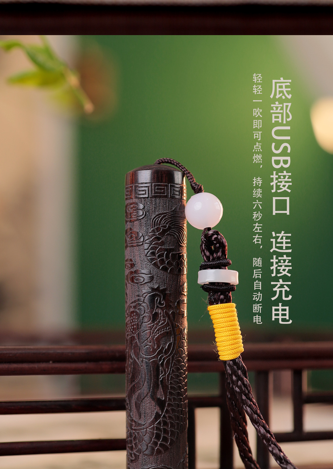 火折子檀木ライター充電創意個性ブロー感応吹き一吹き古代ペンダントビーズ