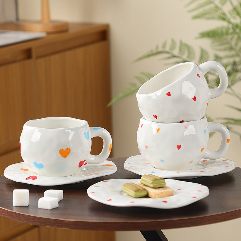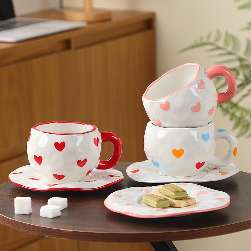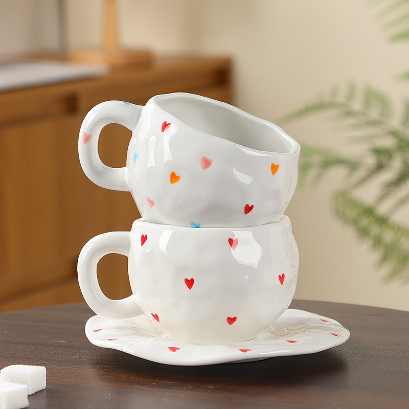 韩式ins风 手捏陶瓷心形咖啡杯子碟套装情侣爱心下午杯茶一杯一碟