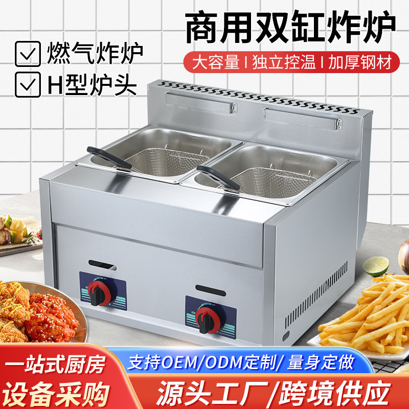 業務用フライヤー ガスフライヤー 業務用二重シリンダー ステンレスフライドスティック フライドポテトストール 大容量フライヤー