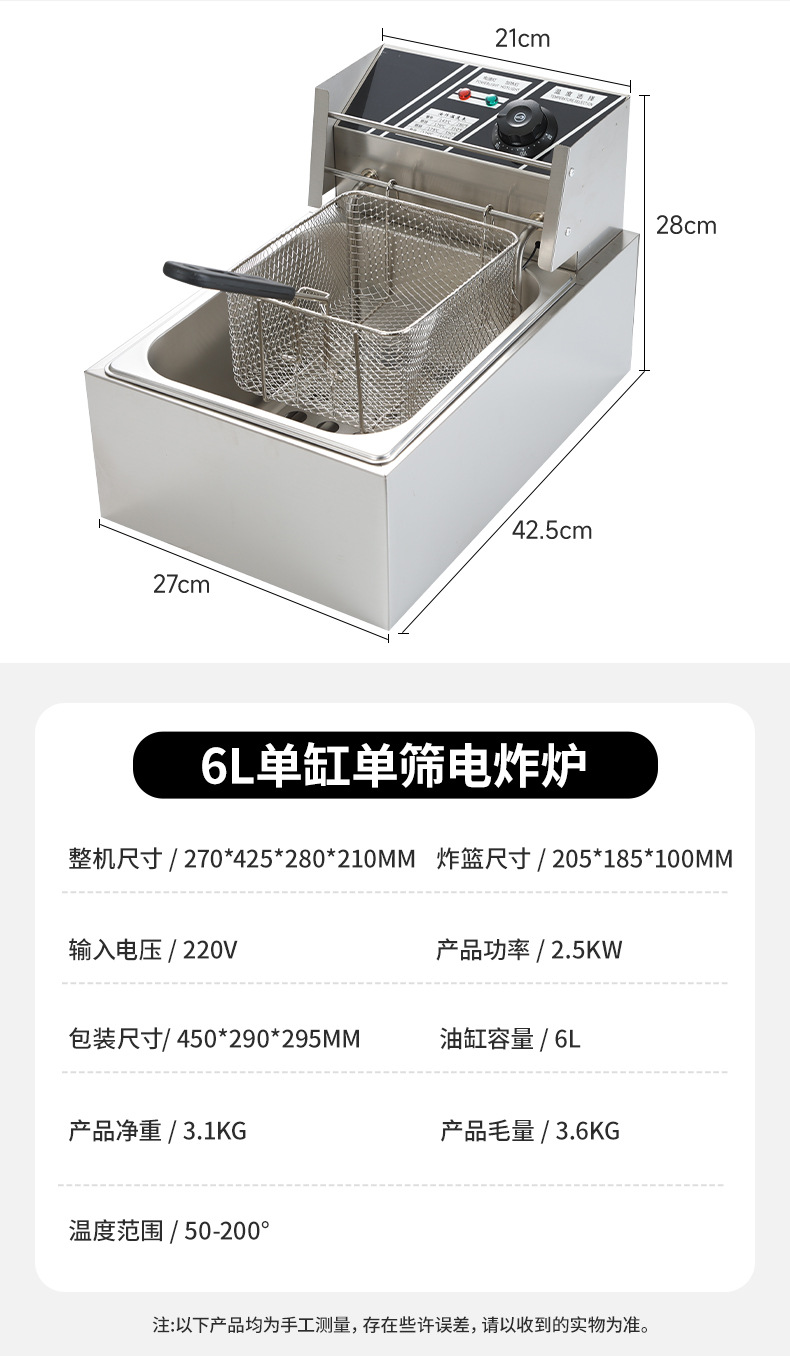商用卓上ステンレスフライヤー電気フライヤー110V/220V欧規美規露店西厨フライドポテト鶏