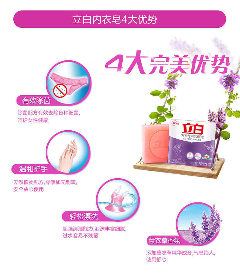 立白内衣专用除菌皂薰衣草除菌护手洁净101g2块量批肥皂抑菌手洗