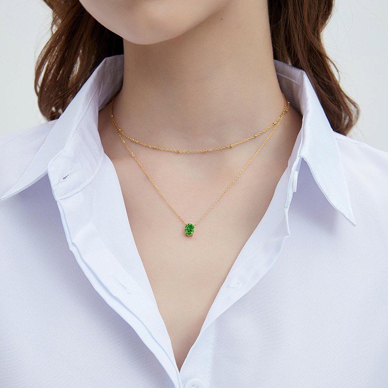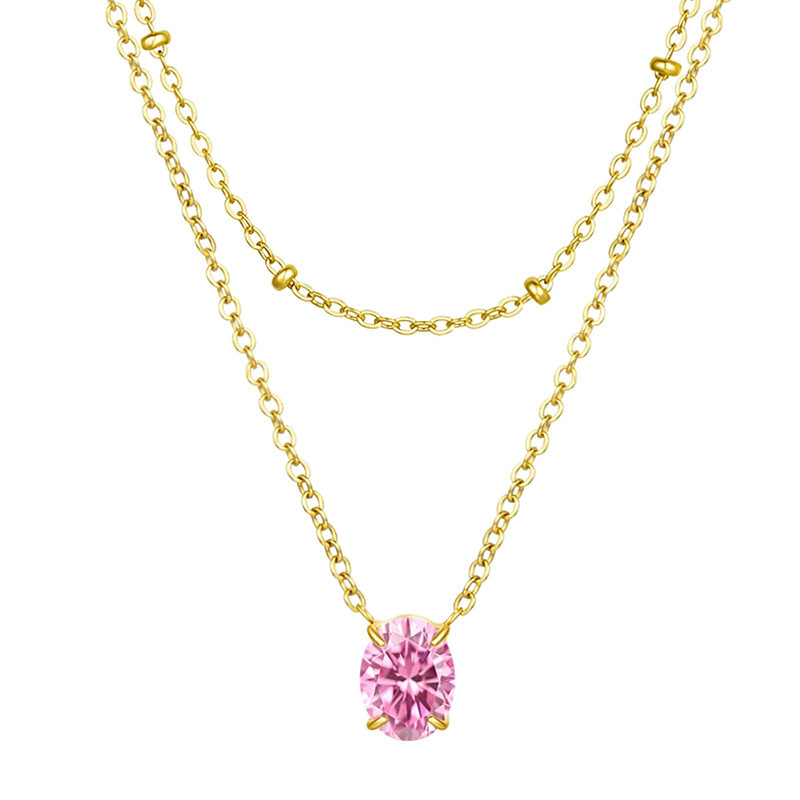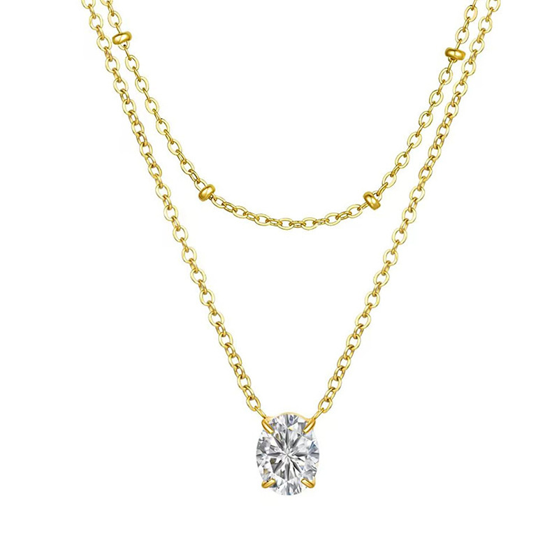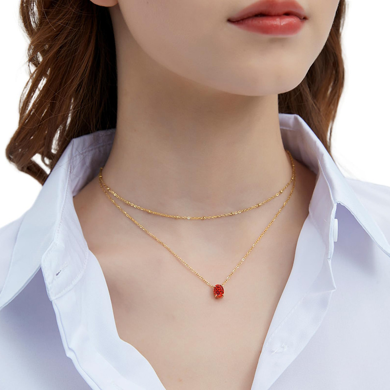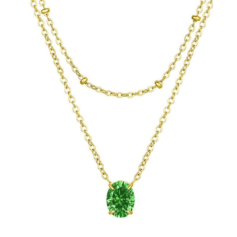 クロスボーダー女性ゴールド誕生石ネックレス、14K ゴールドダイヤモンドネックレス絶妙なオーバルペンダントゴールドネックレス