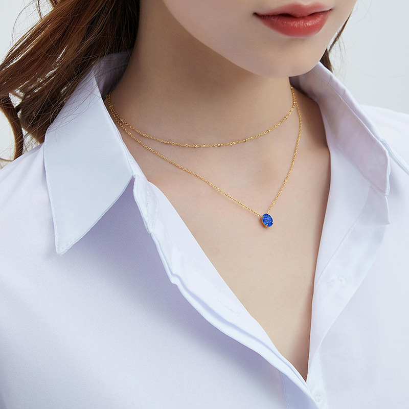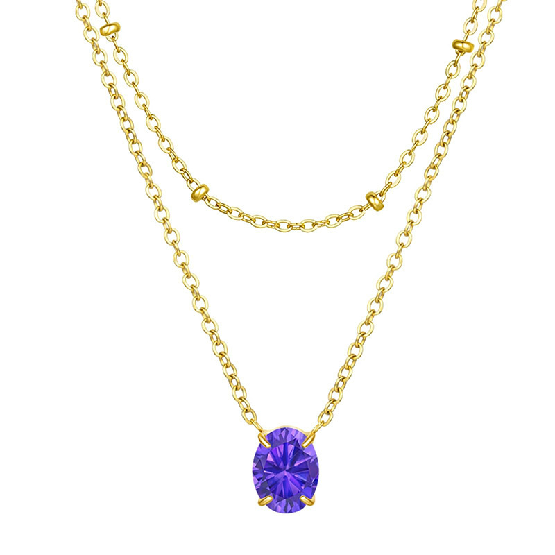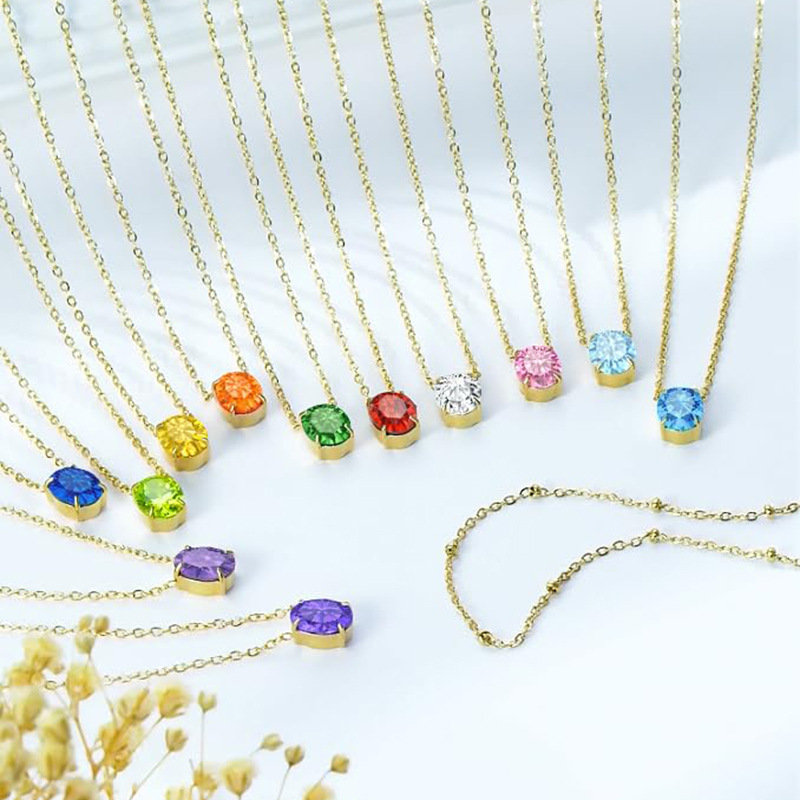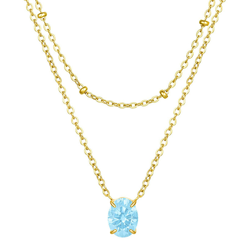 跨境女士黄金生日石项链,14K金钻石项链精美椭圆形吊坠金项链