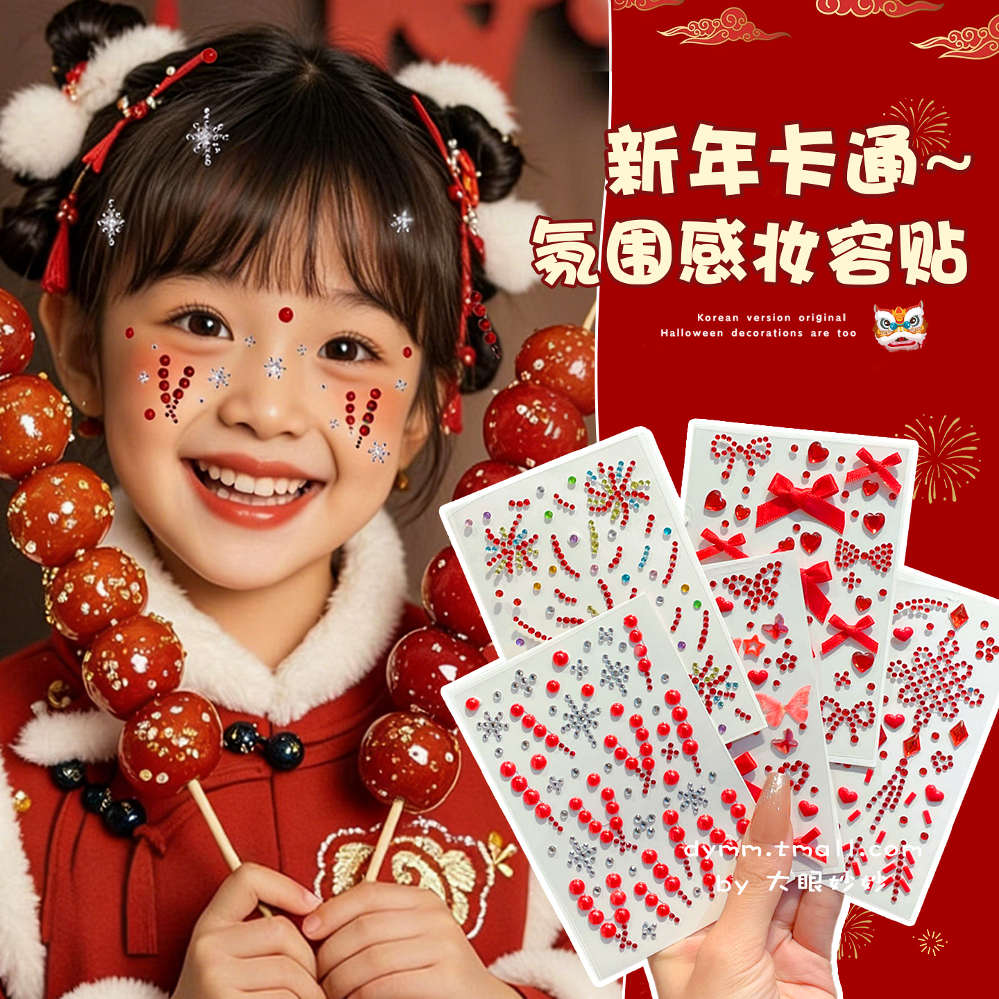 新年元旦贴纸儿童红色化妆脸贴女孩表演妆容贴公主彩绘贴画装饰女