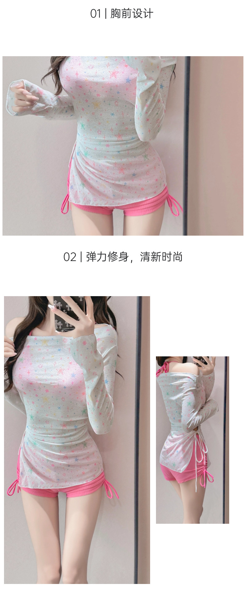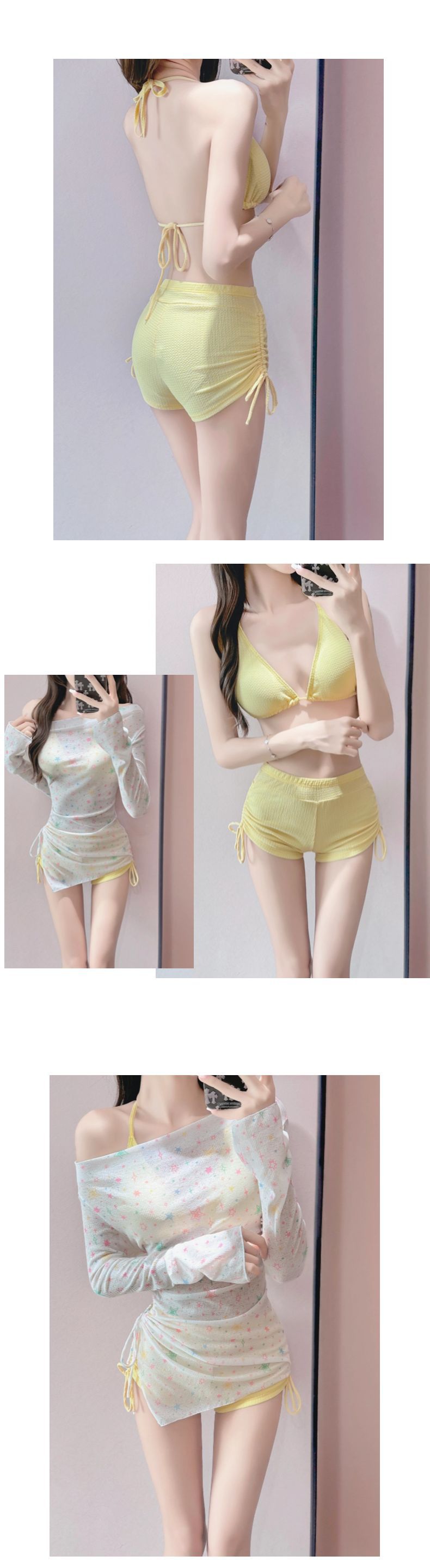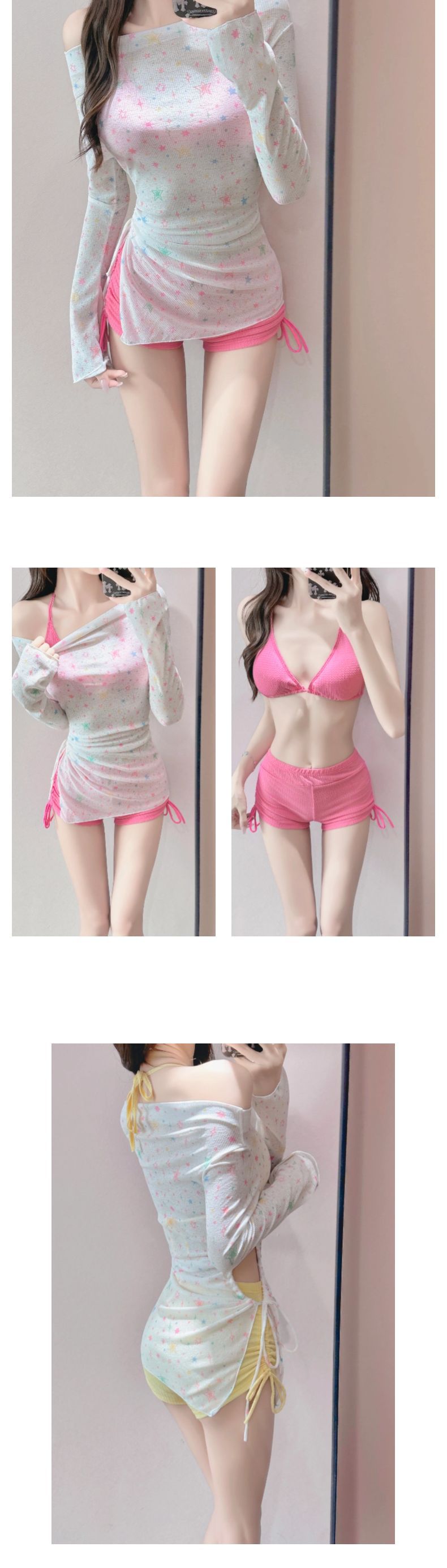 比基尼泳衣女星星长袖防晒罩衫分体平角裤遮肚显瘦保守温泉三件套