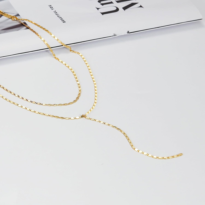 クロスボーダー レディース 14K ゴールドメッキ フレンチ ダブルレイヤー タッセル ファッショナブルで多用途なハイエンド鎖骨チェーン ネックレス