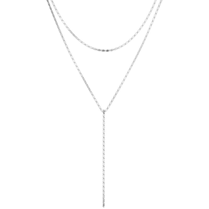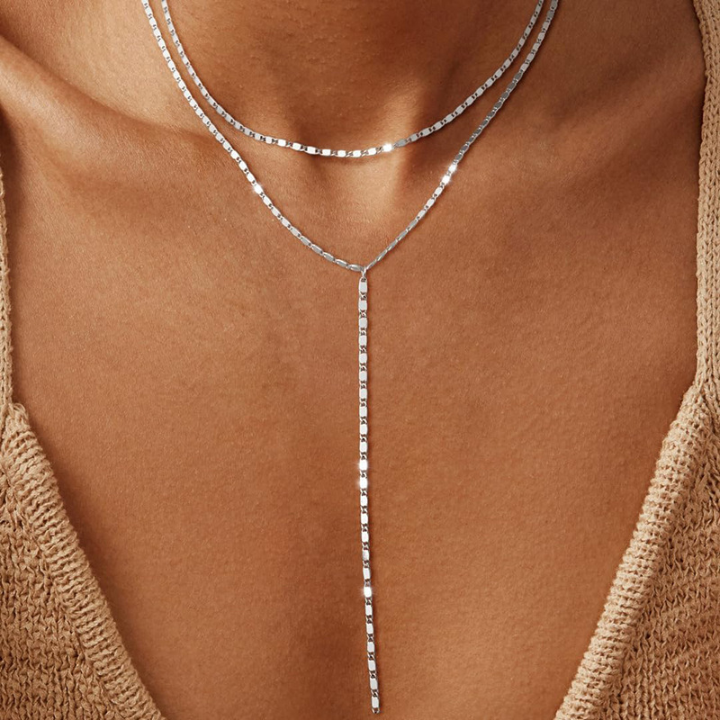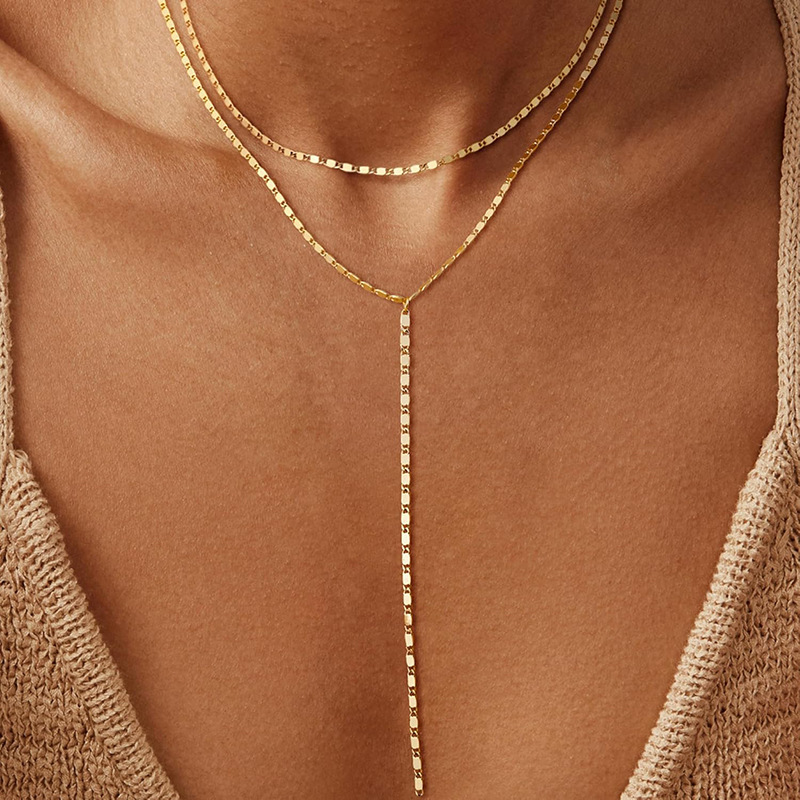 跨境女士镀14K金法式双层叠戴流苏时尚百搭高级感锁骨链项链