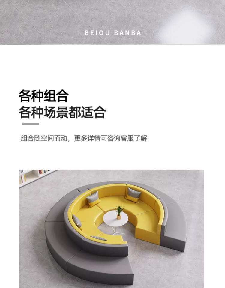 半圆弧形异形商务沙发办公室洽谈酒店售楼处大堂美容院休息区接待