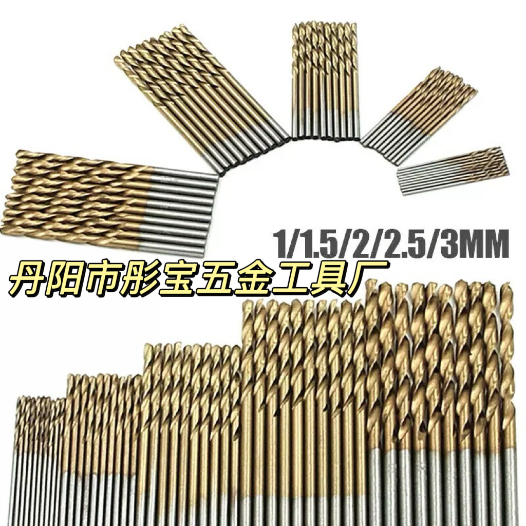 50pc麻花ドリルセット1-3mmドリルHSS高速鋼チタニウムメッキ麻花ドリル木工穴あけ木材