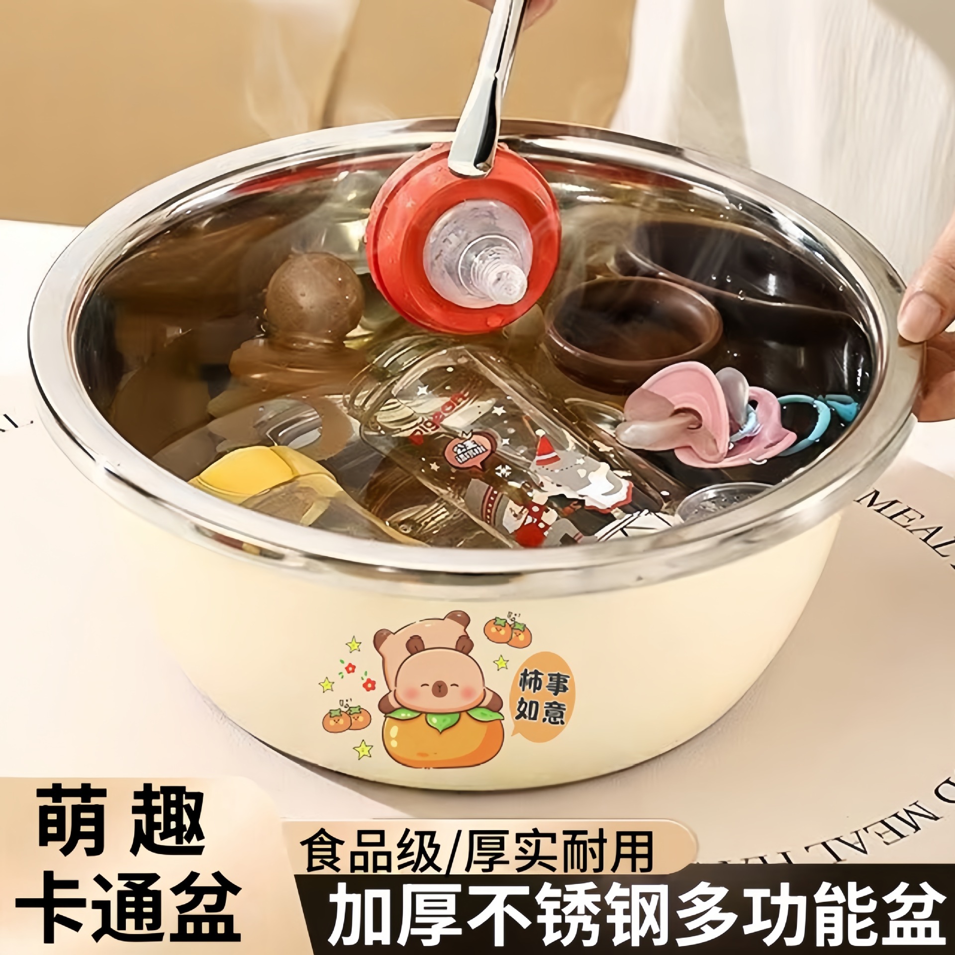 卡皮巴拉洗奶瓶专用盆食品级不锈钢家用厨房烘焙盆洗水果加厚耐用