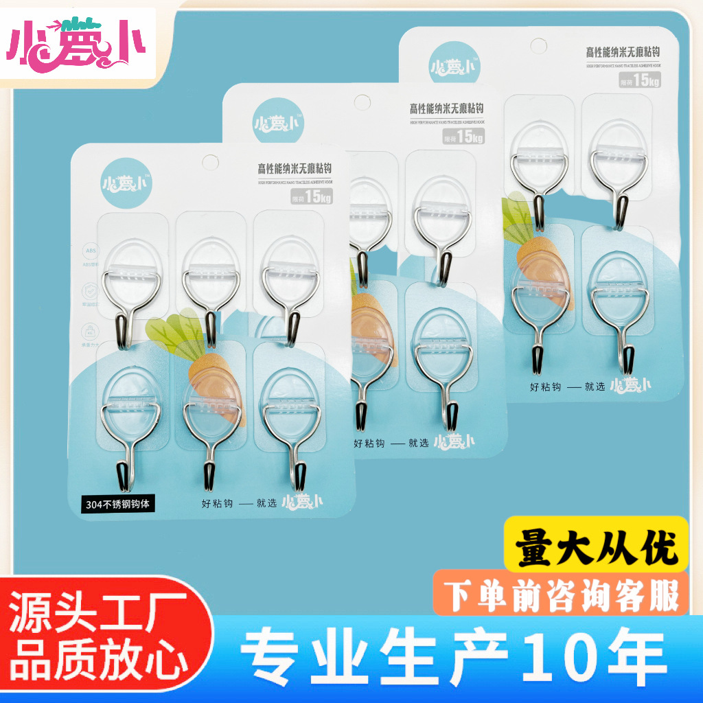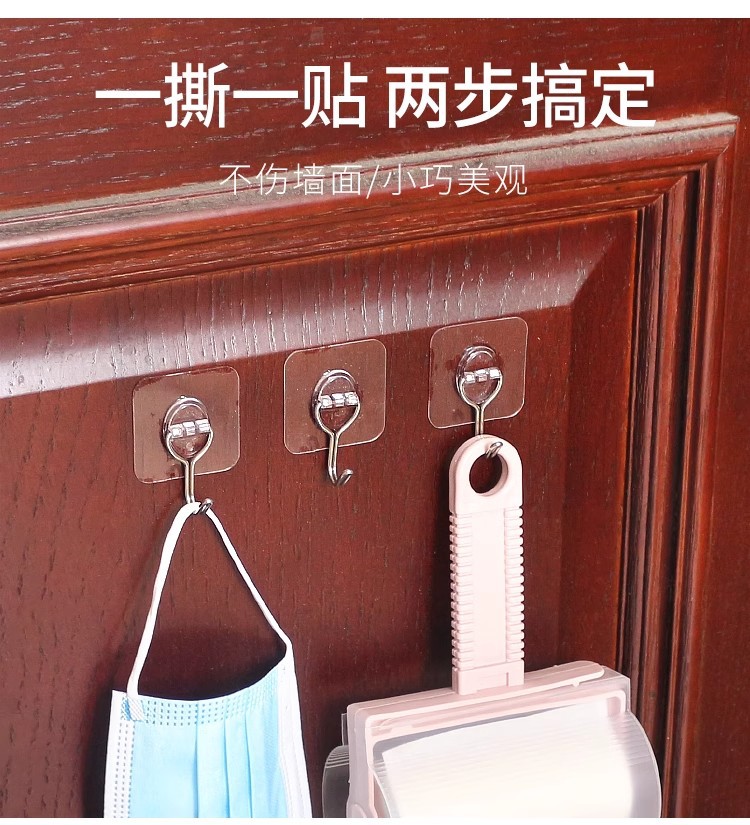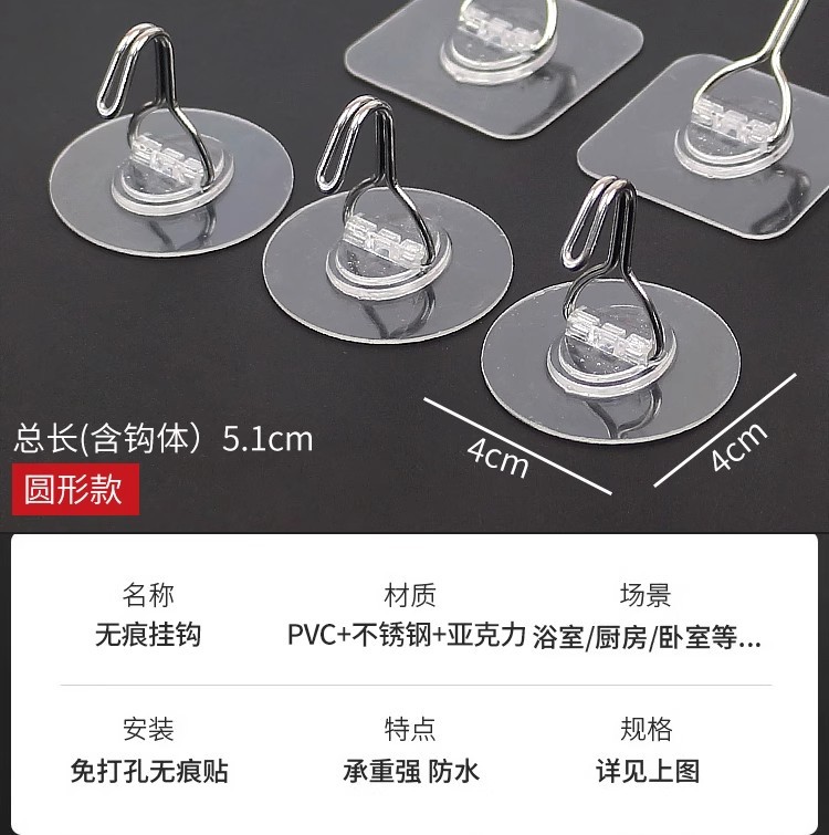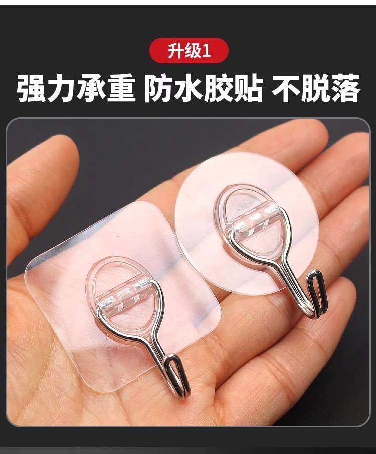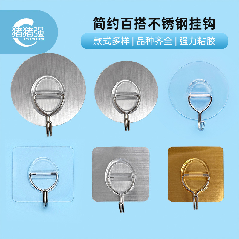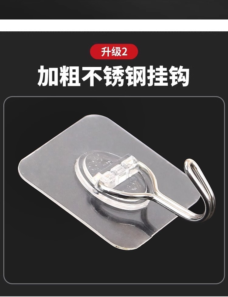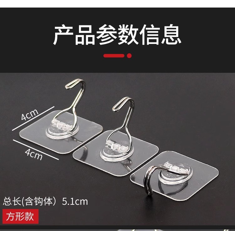 フック、パンチフリー粘着フック、強力、痕跡なし、透明ステンレス鋼、キッチン、バスルーム、洗面台、ドア、壁、クロスボーダー卸売