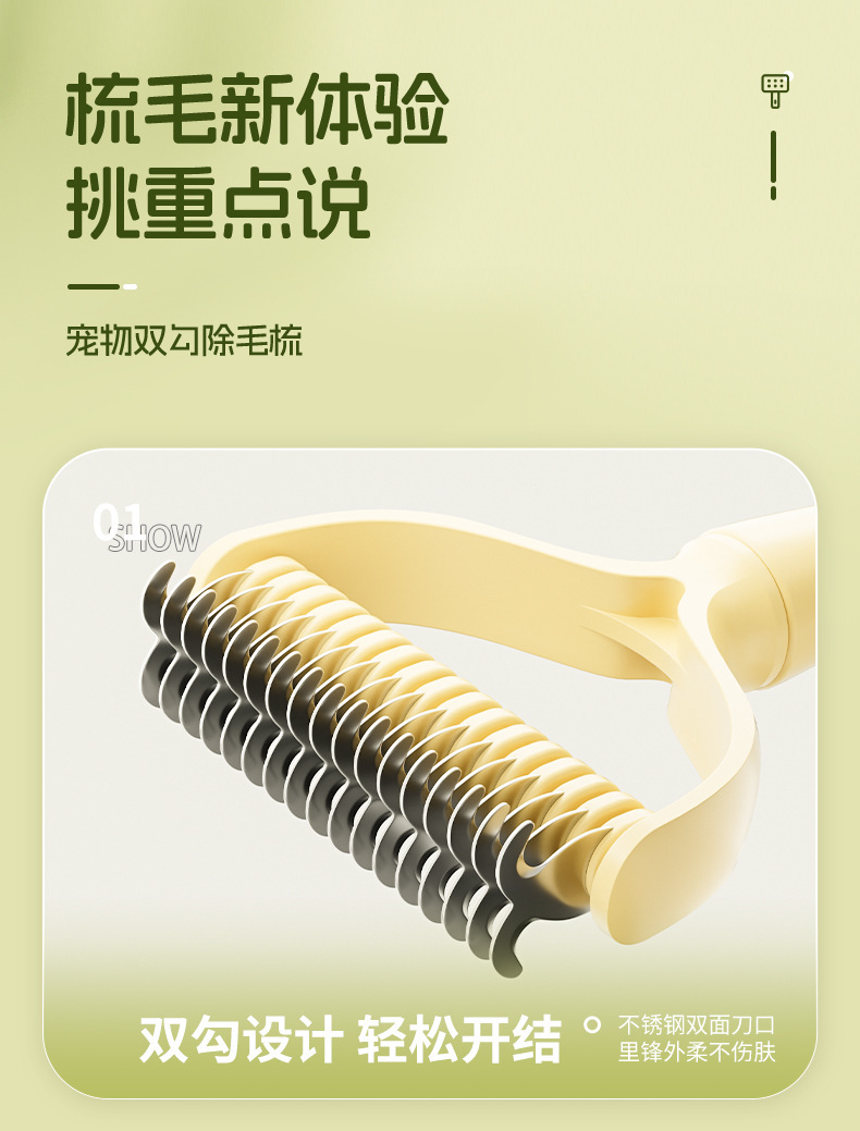 犬猫用ペットノット開けコーム、犬の毛を梳き、薄くし、長毛の猫の毛を掃除し、浮き毛を取り除き、絡まりを防ぐコーム