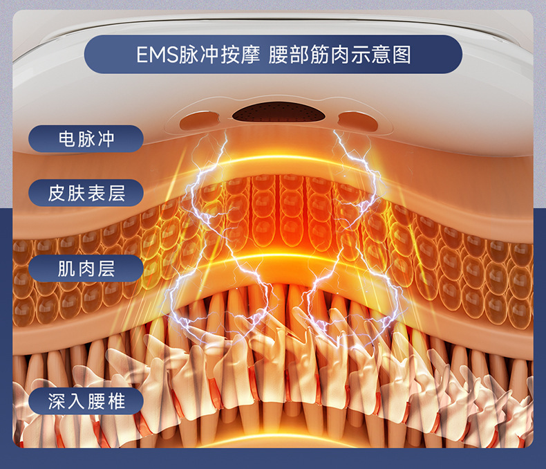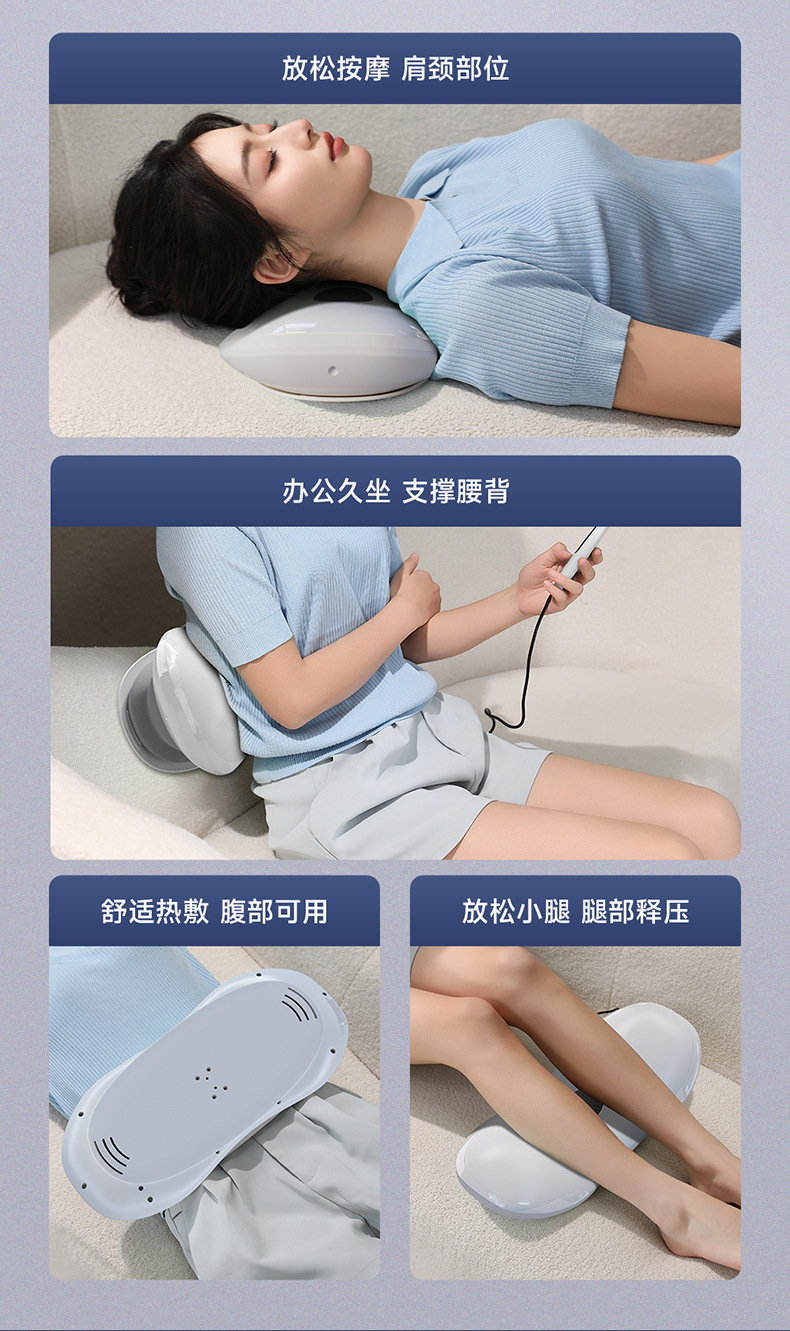 腰部按摩器跨境护腰按摩枕气囊充电加热多功能曲度脉冲腰椎按摩仪