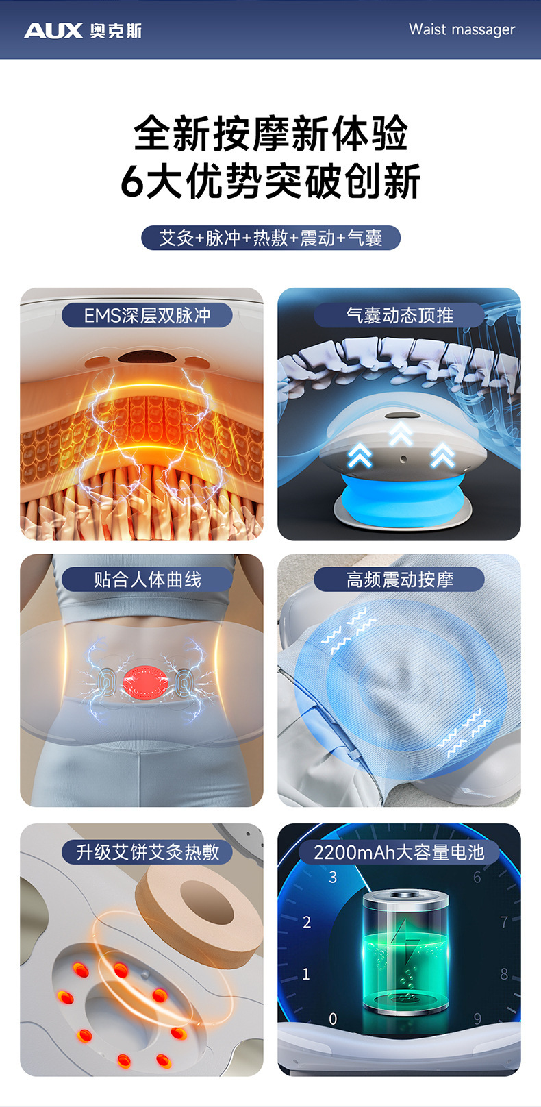 オークス腰マッサージャー全自動頚椎腰痛緩和器具曲率もみスマート腰マッサージャー