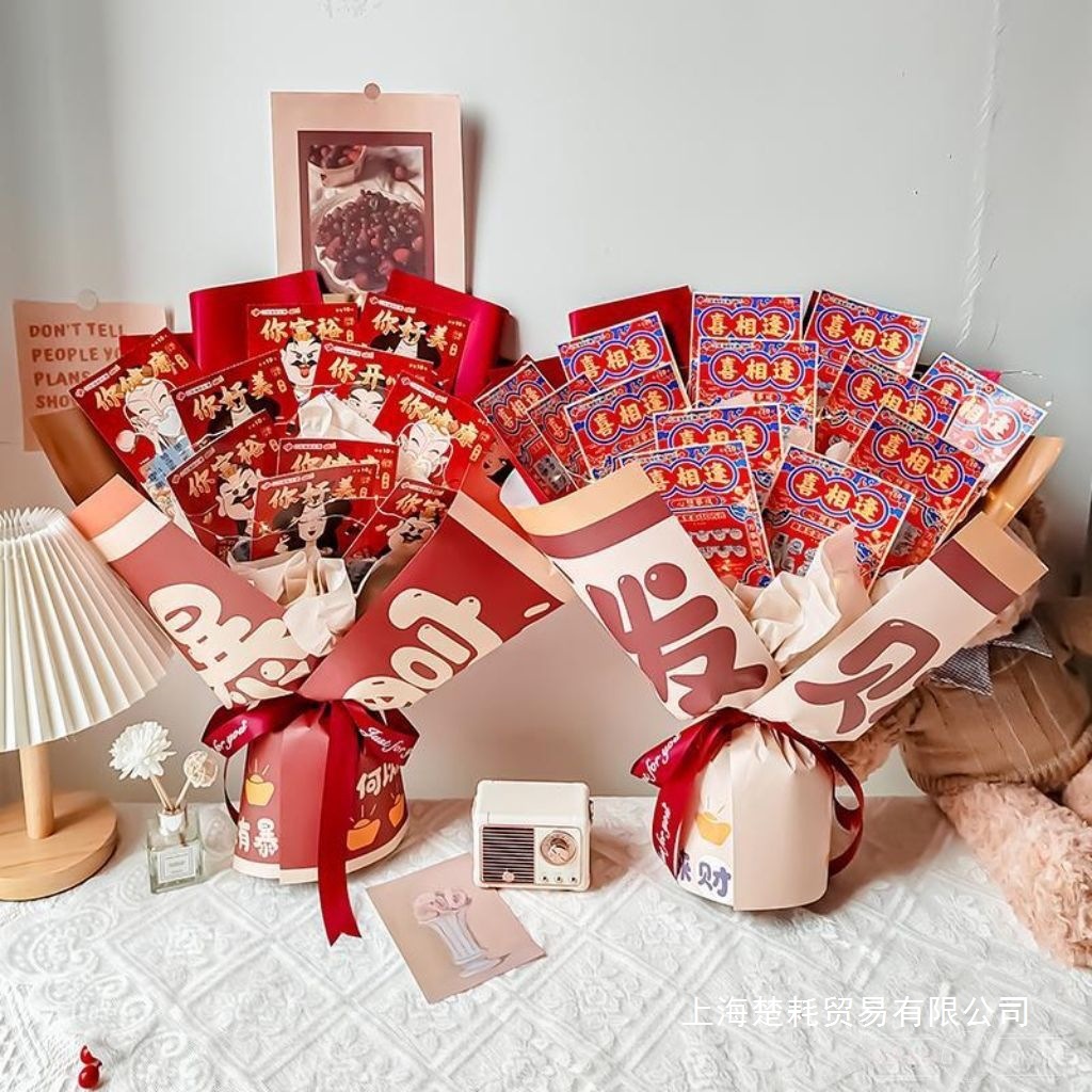 赤い封筒完成品、金持ちになる、DIY花束作り、包装資材一式、半製品、夫、お父さん、その他