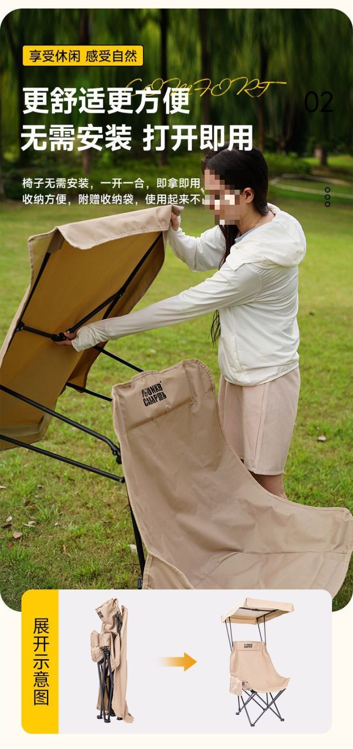 ムーンチェア屋外ライト釣り椅子背もたれサンシェードチェア耐久性のある調節可能なキャンプ折りたたみ椅子金属メーカー
