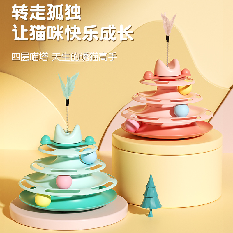 国境を越えた猫のおもちゃ 4 層猫のターンテーブル自己楽と退屈を和らげる猫のおもちゃインタラクティブ猫のおもちゃペット用品工場