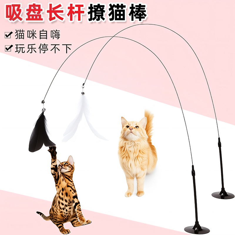 底座吸地式逗猫棒杆猫咪玩具钢丝新款耐用羽毛替换头耐咬
