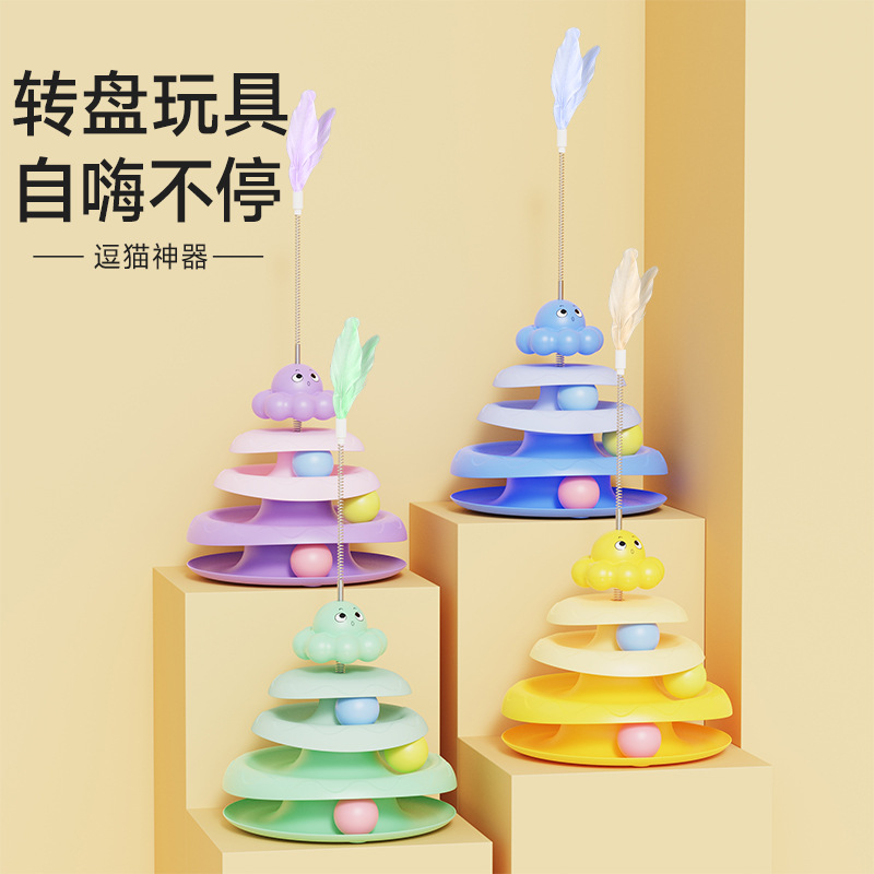 猫のおもちゃ 4 層トラック猫ターンテーブルフェザー自己幸福救済猫スティック噛みつき防止ゲームプレートペット用品ホットスタイル