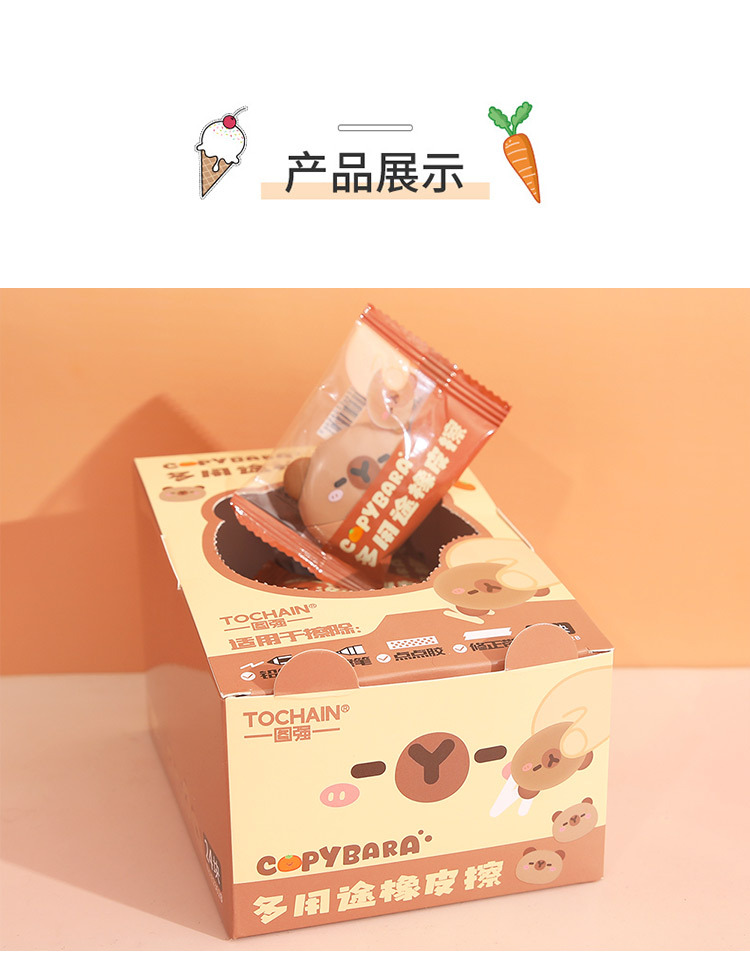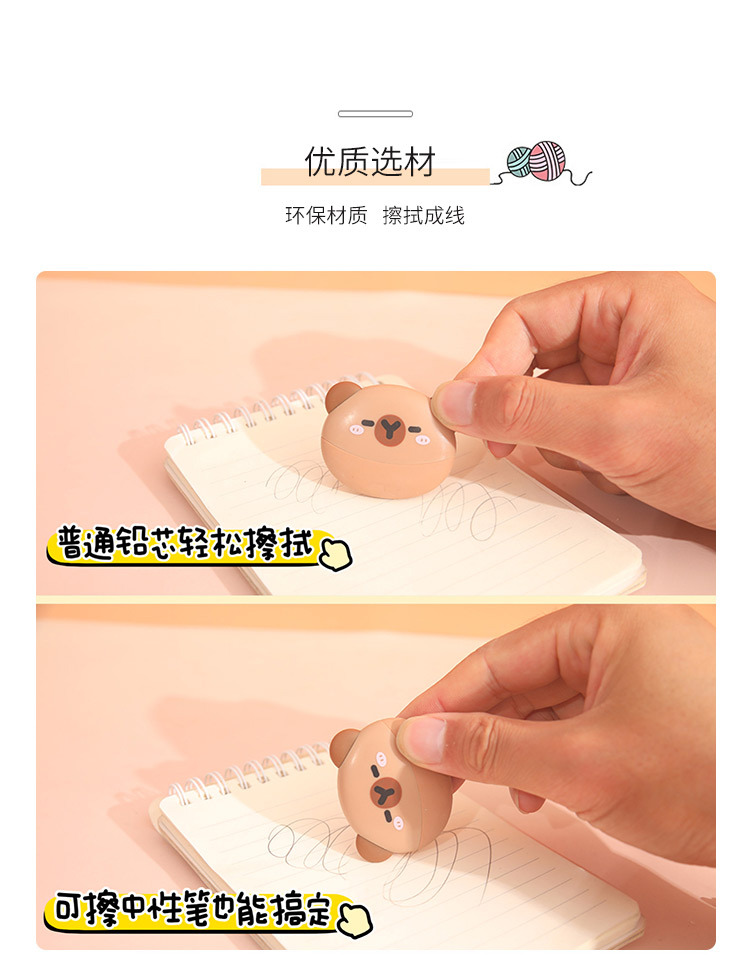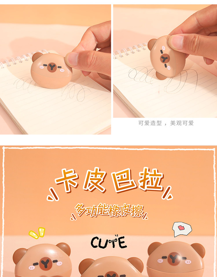 图强橡皮擦卡皮巴拉卡通儿童魔术盒橡皮小学生用铅笔擦创意文具