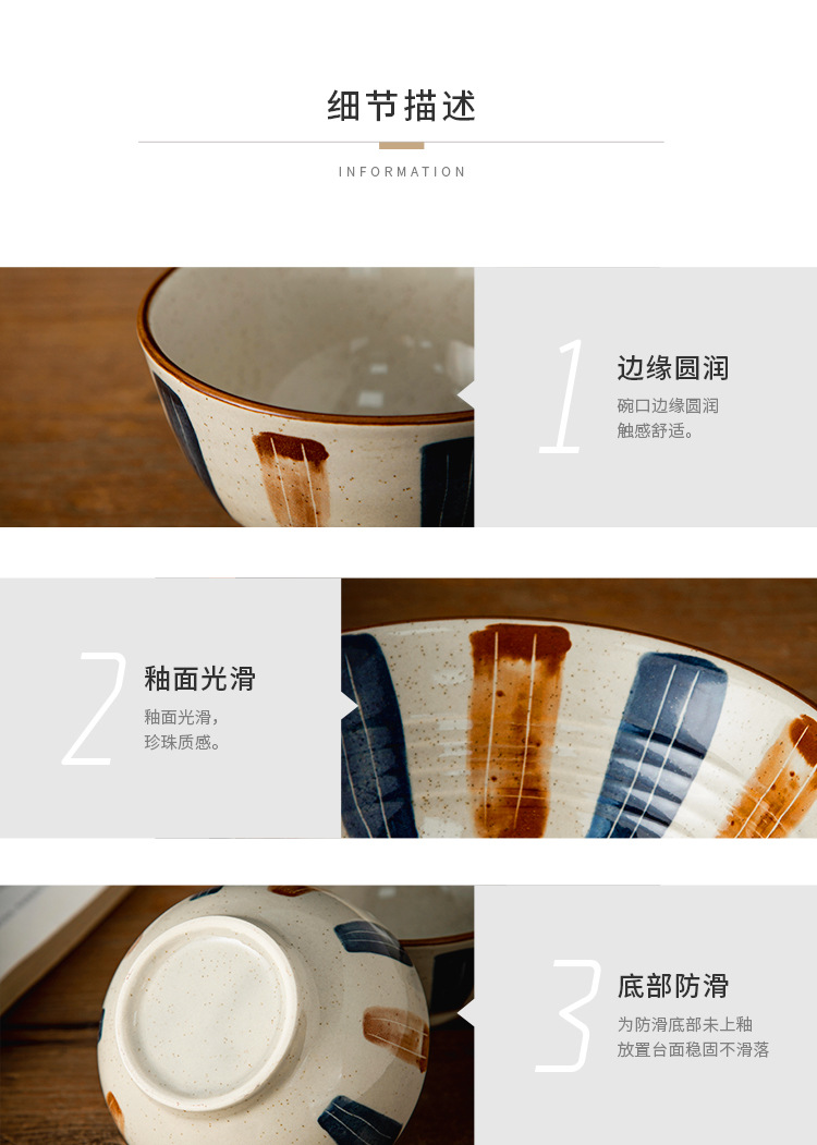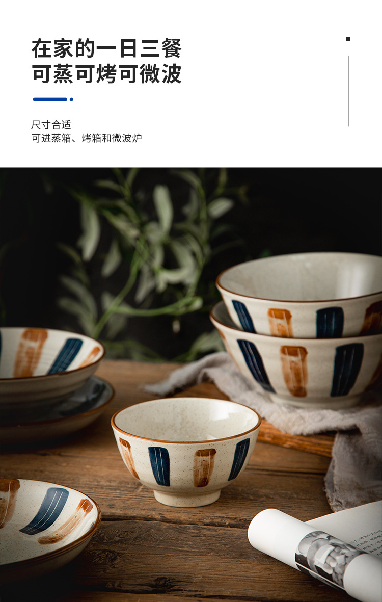 复古陶瓷碗釉下彩日式餐具家用饭碗汤碗沙拉碗个人专用碗具套装
