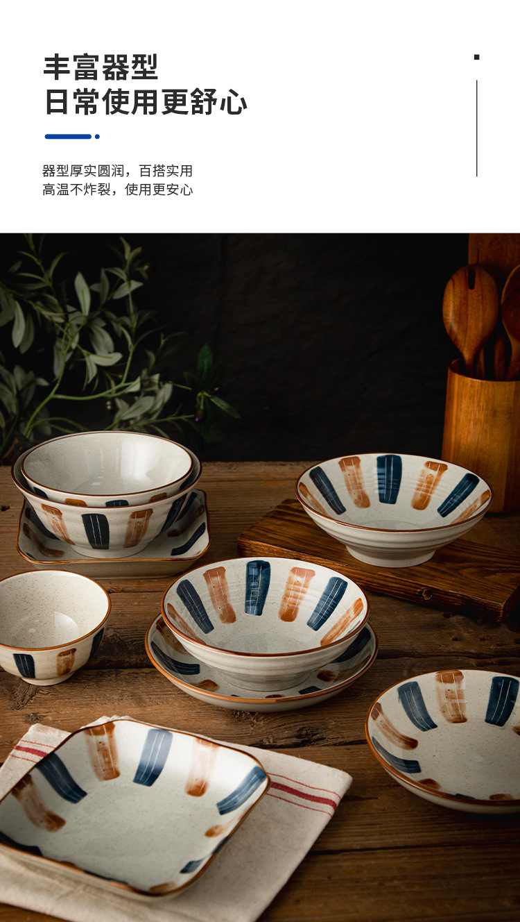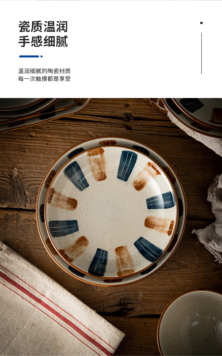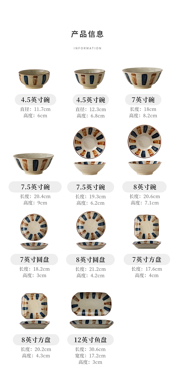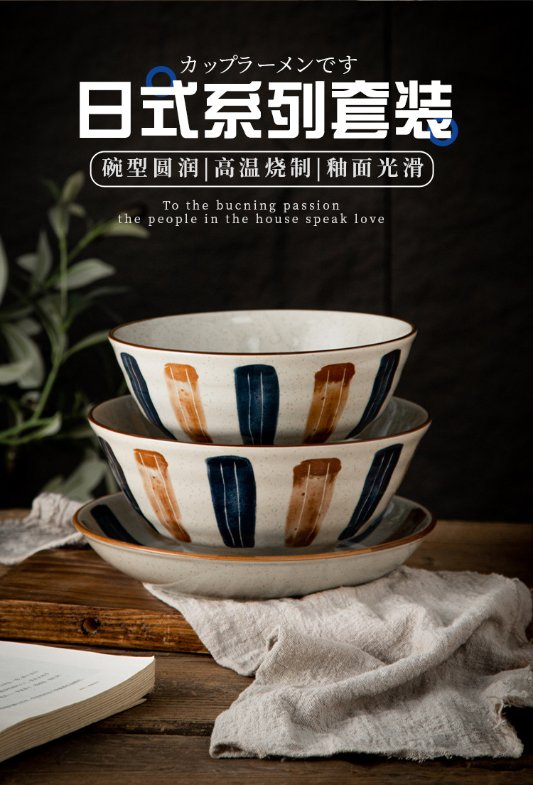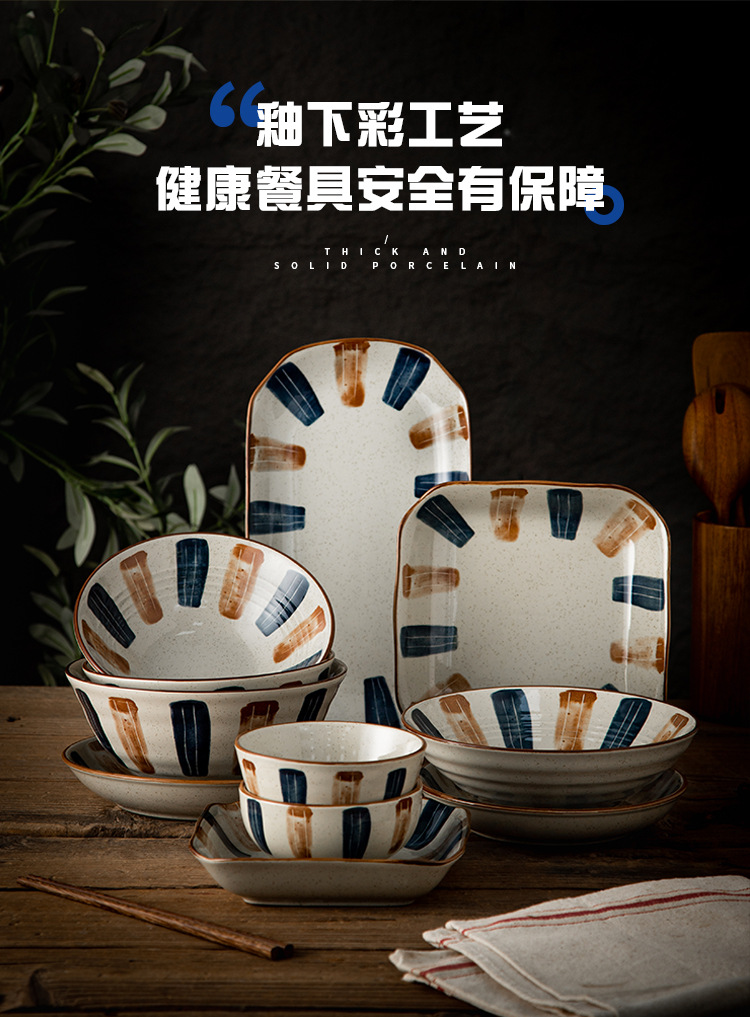 Ins日本式陶磁器碗皿セット家庭用食事大碗飯皿皿スープ碗レトロ碗皿食器食器