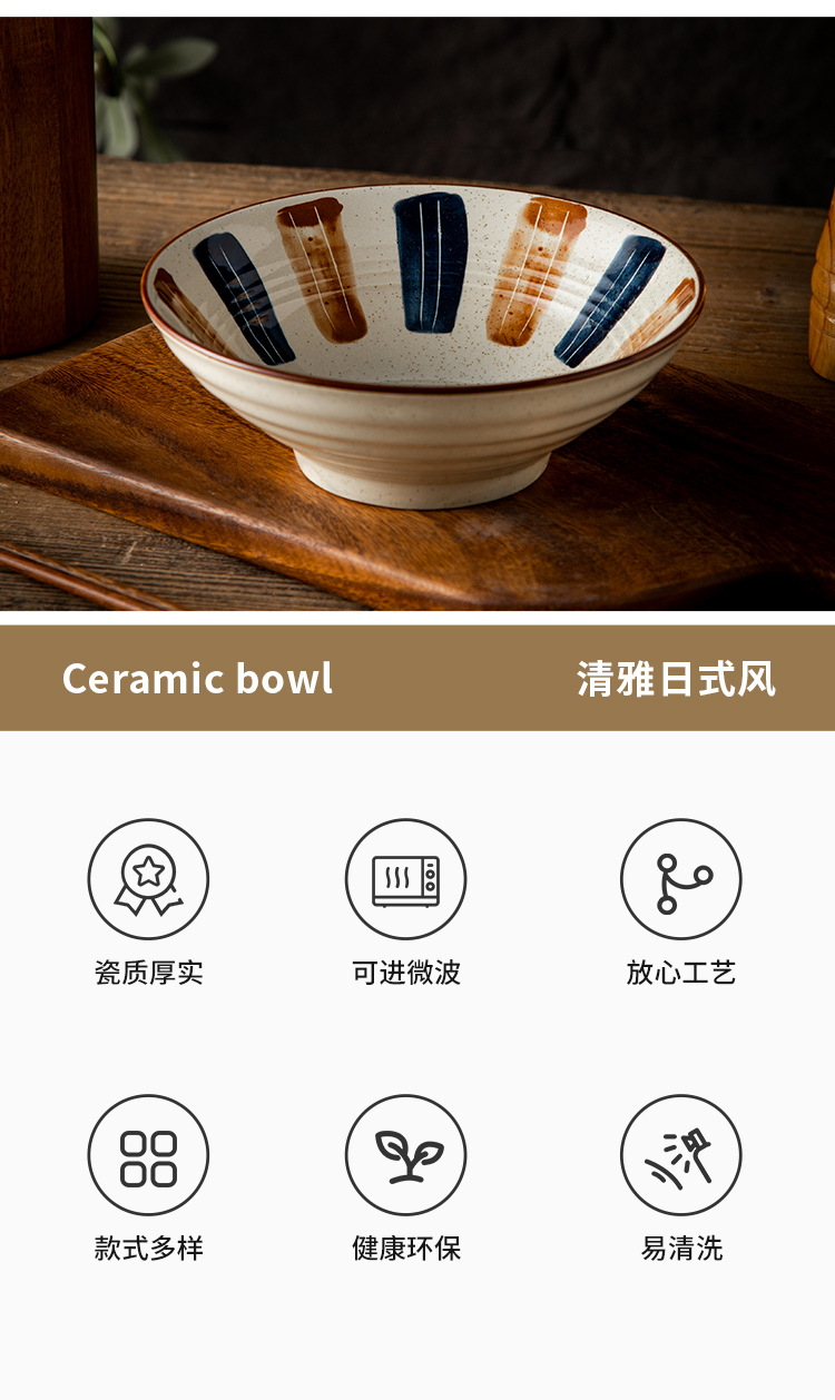日式陶瓷泡面碗大号汤碗斗笠碗家用宿舍大碗拉面碗釉下彩餐具批发