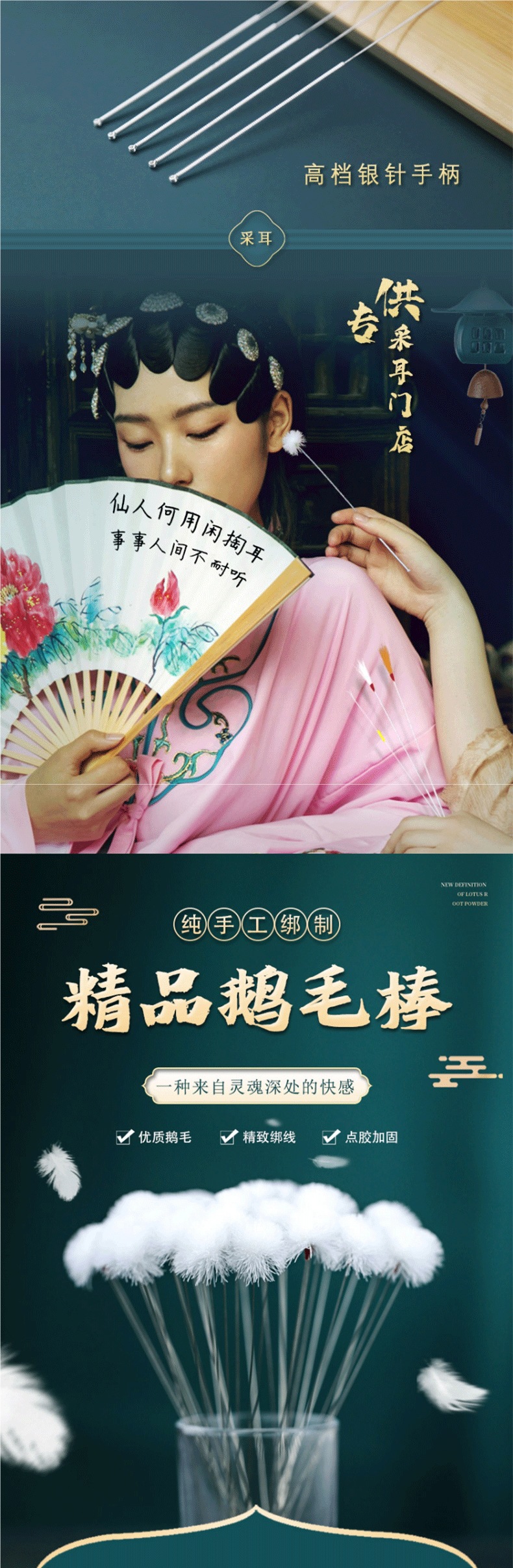 プロの耳かきツールセット、耳かき、耳かき、グースフェザースティック、フェザーアウトイヤースクープのフルセット