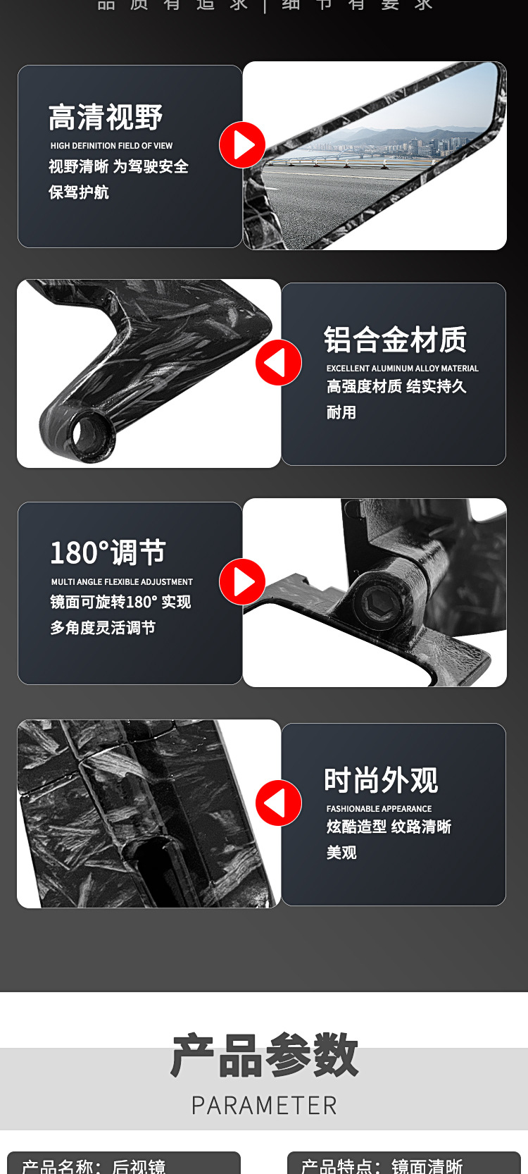 オートバイ改造バックミラー固定翼マルチアングル高精細ミラー反射ミラー調整可能な反転ミラー