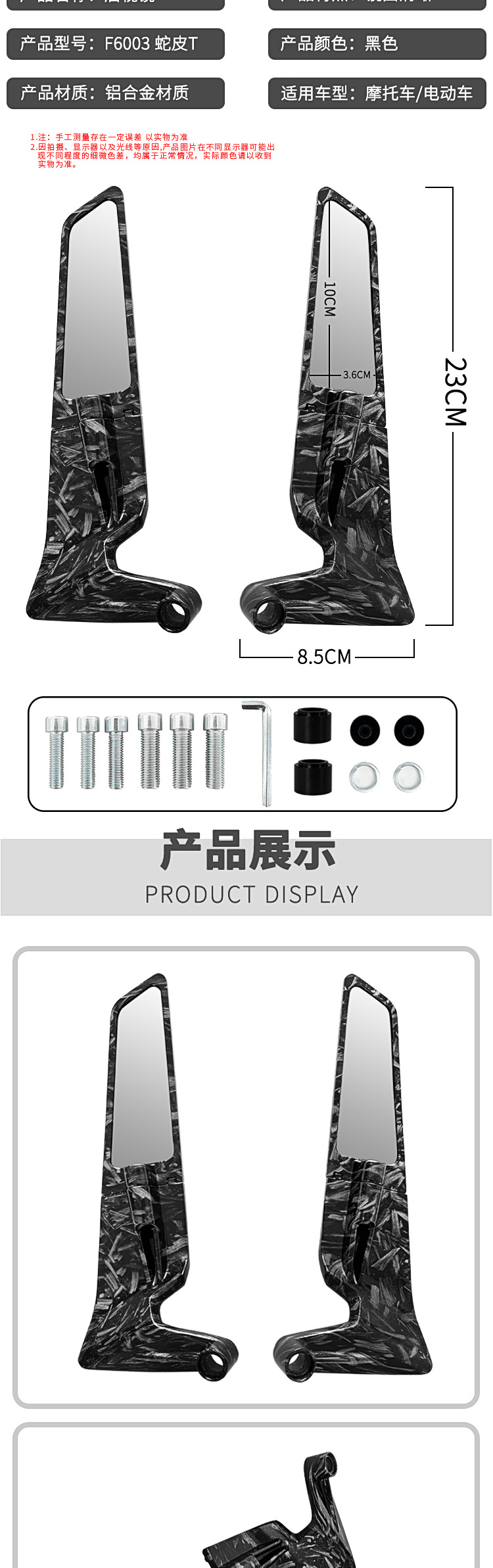 カスタマイズされたオートバイ改造固定ウイングバックミラー電気自動車ユニバーサルアルミ合金リフレクター補助ミラーアダプター