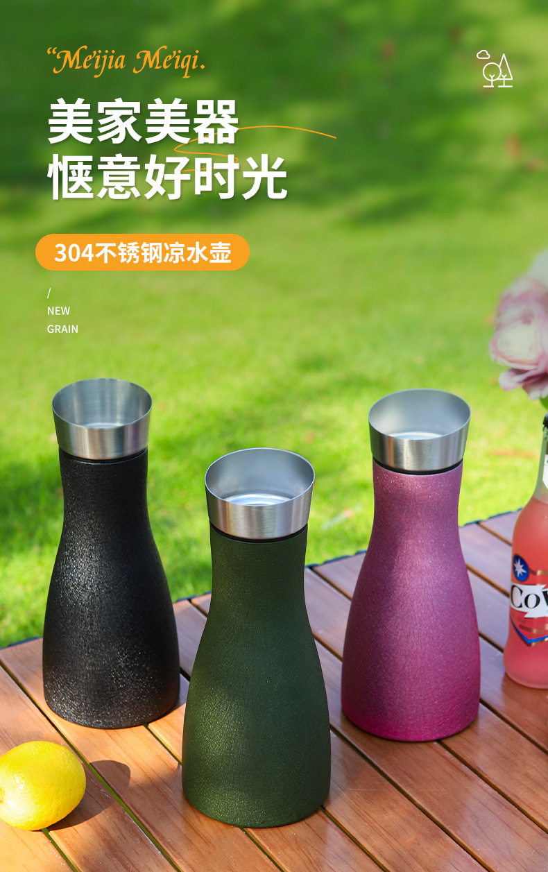見栄えの良い大容量304ステンレス鋼のコールドドリンクポット、ステンレス鋼の蓋、保温、保冷、落下防止ジュースポット