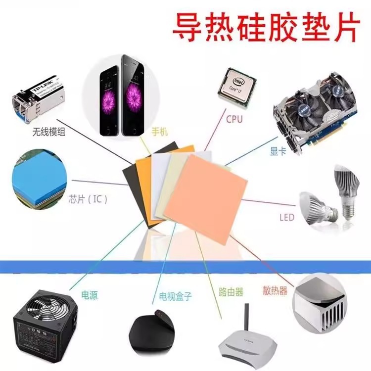 粘着剤付き型抜き熱伝導シリコンシート CPUグラフィックスカード用熱伝導パッド リチウム電池蓄電設備用熱伝導シリコン カスタムメイド
