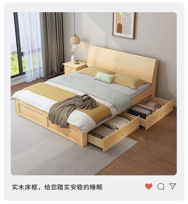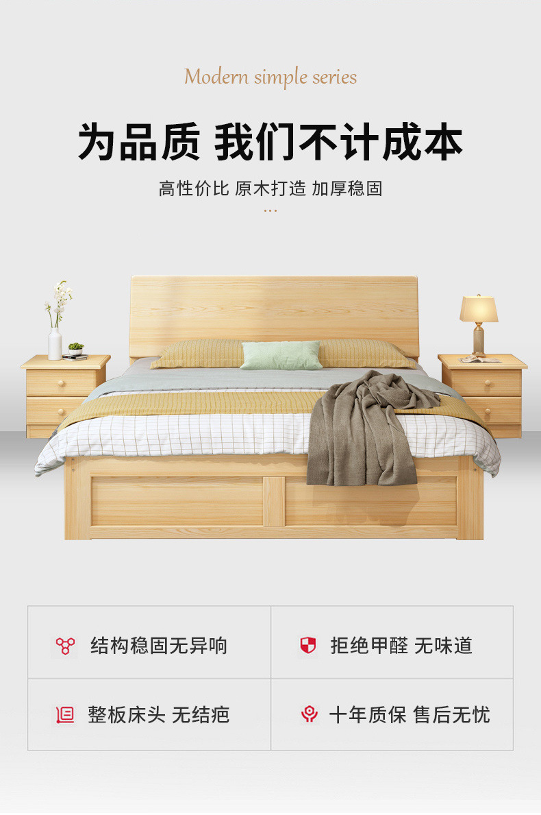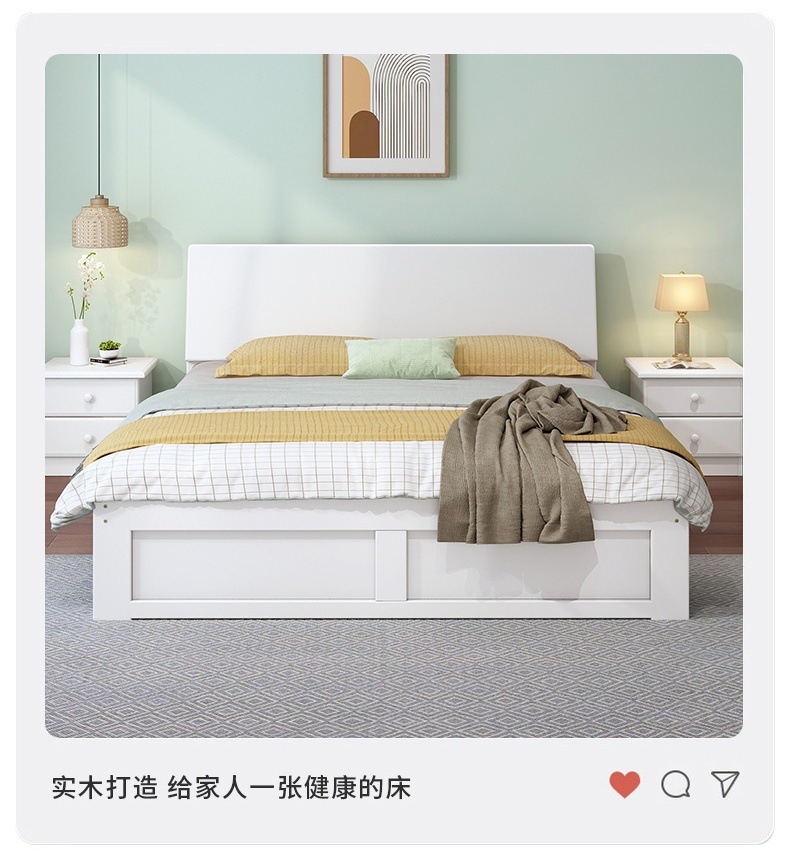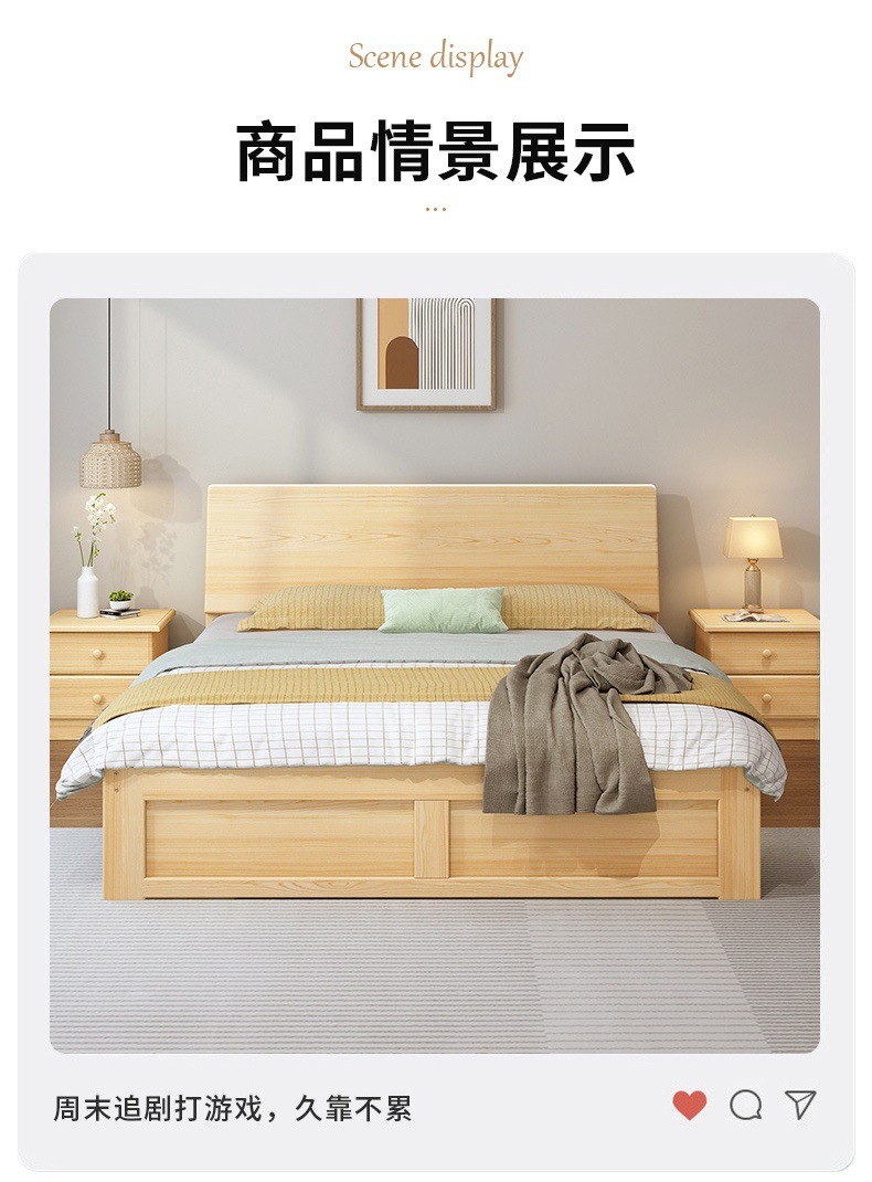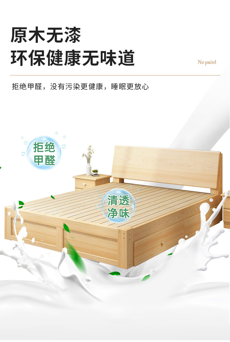 無垢材ベッド 1.5m シンプルダブルベッド 1.8m 家庭用マスターベッドルーム 経済的 1m シンプルレンタルルーム シングルベッド