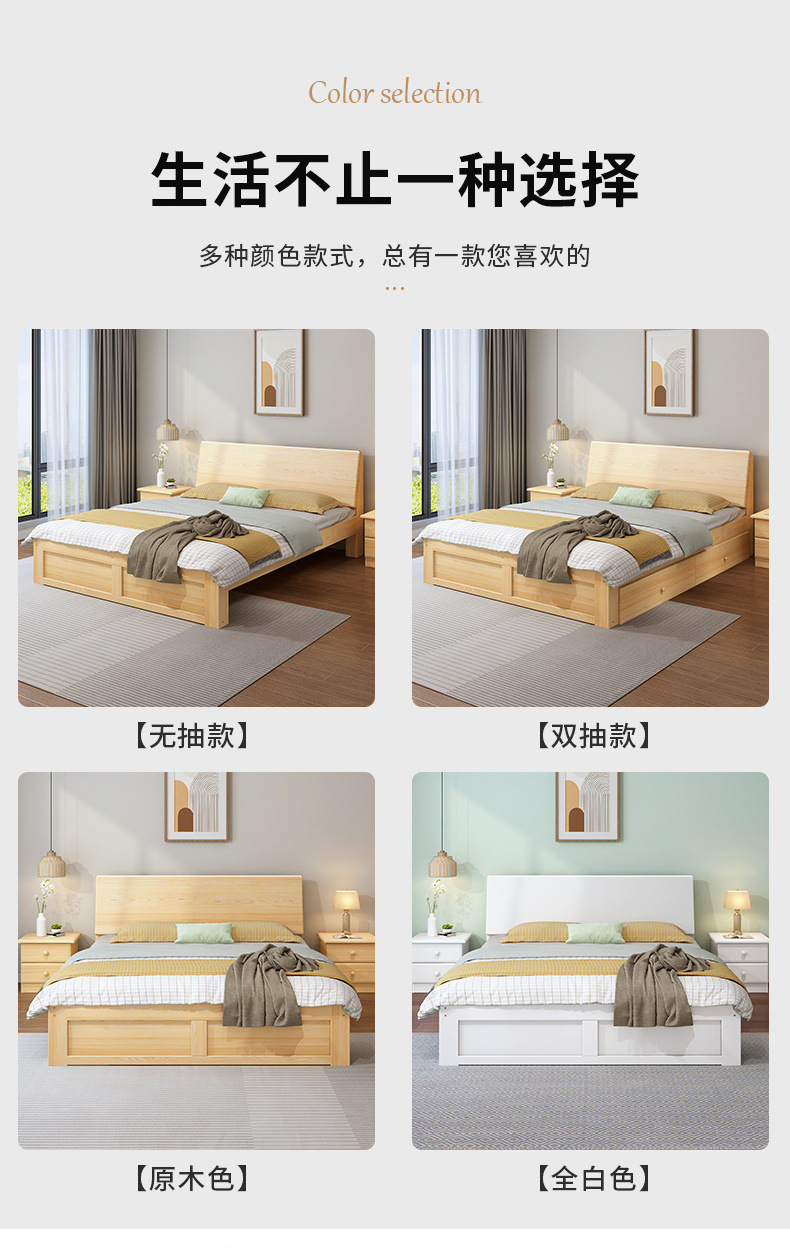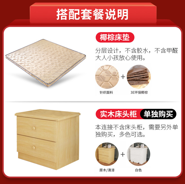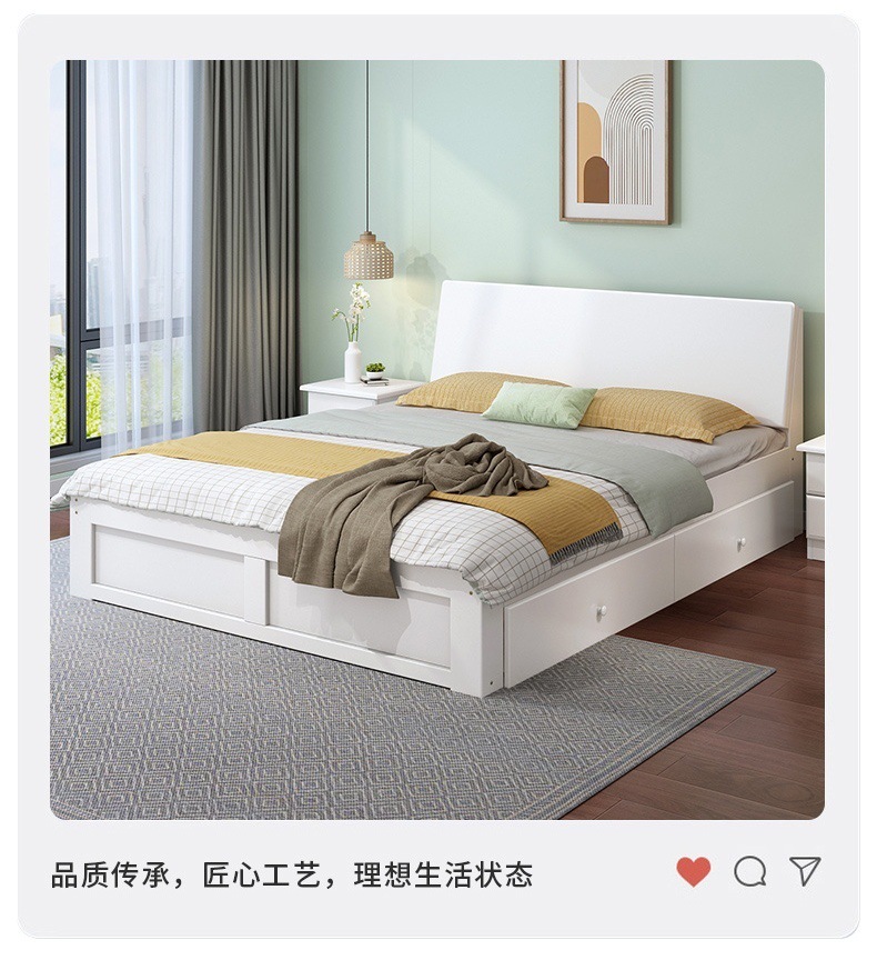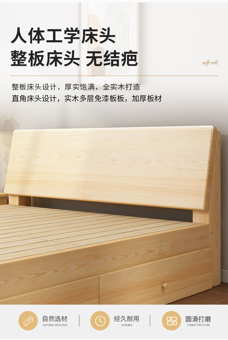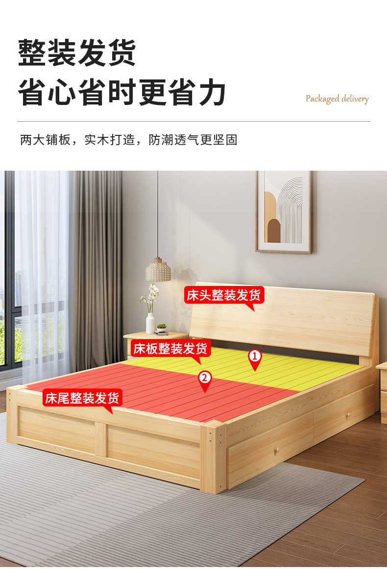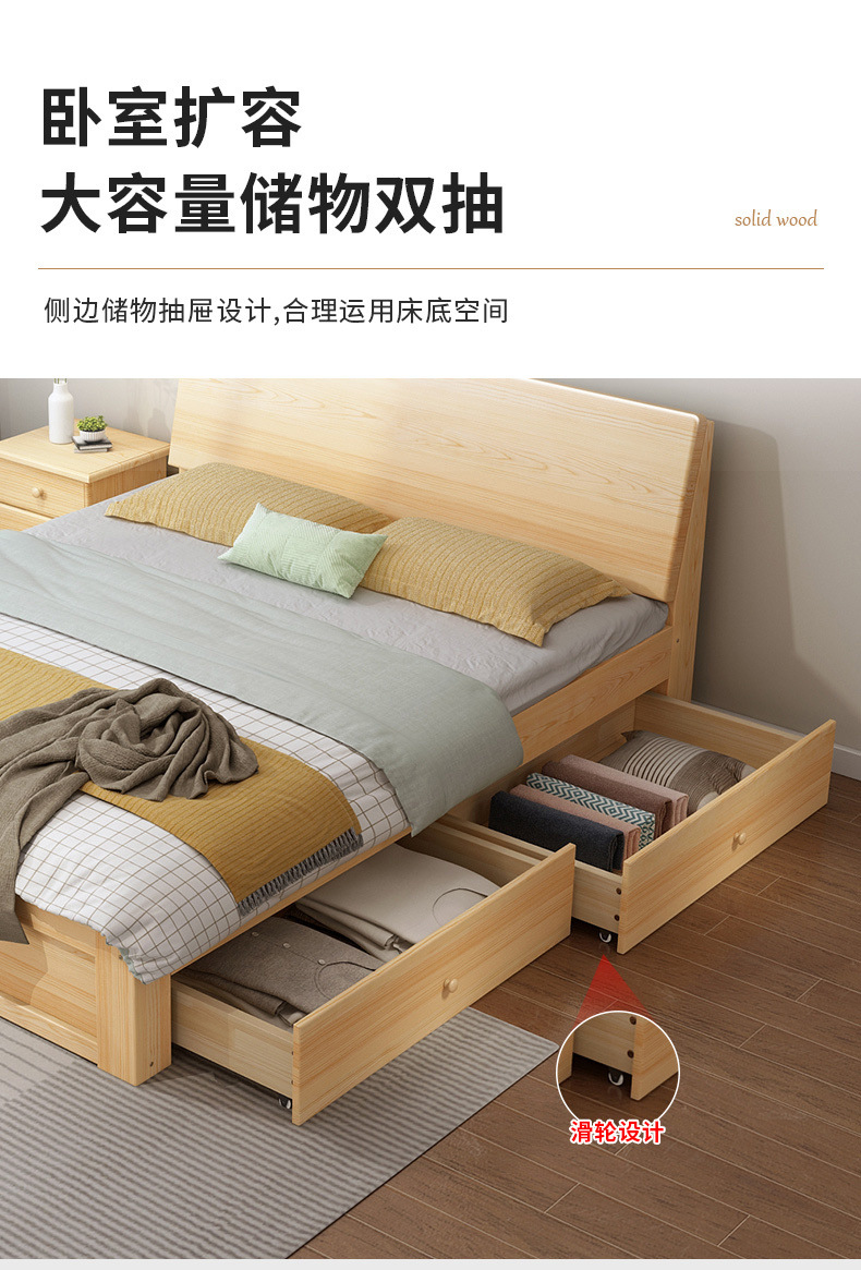 無垢材ベッド 1.5m シンプルダブルベッド 1.8m 家庭用マスターベッドルーム 経済的 1m シンプルレンタルルーム シングルベッド