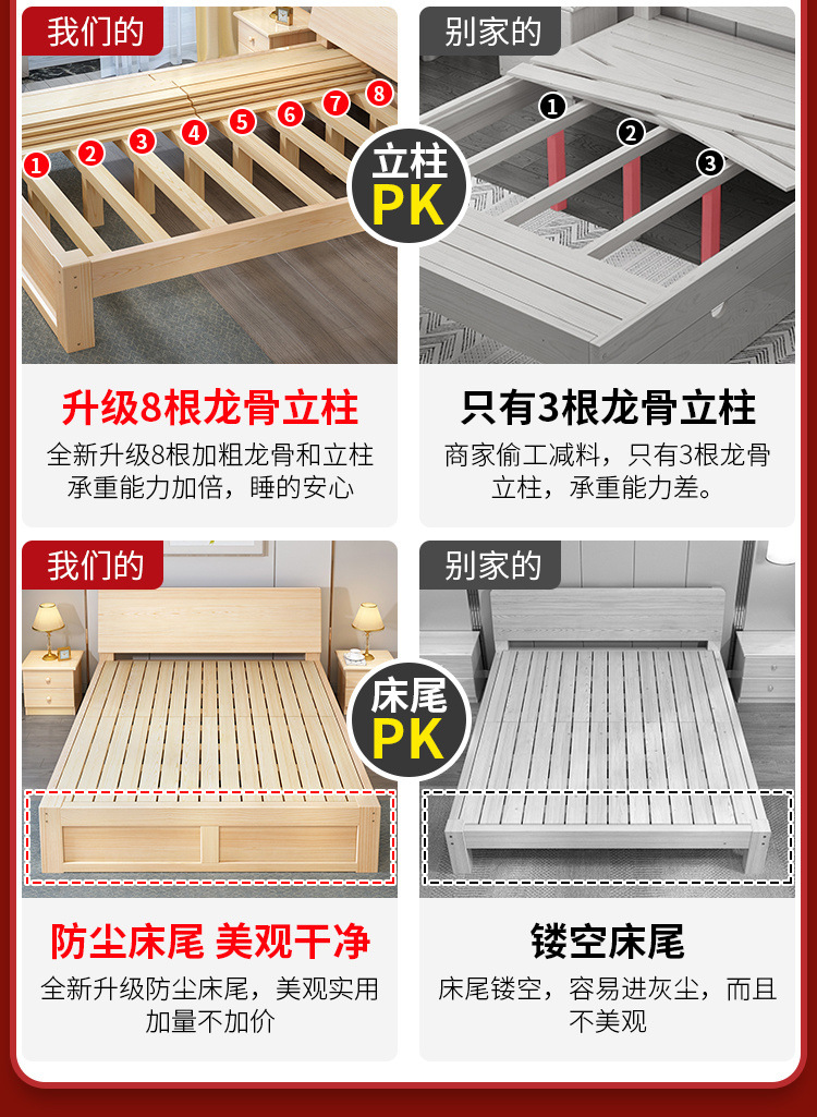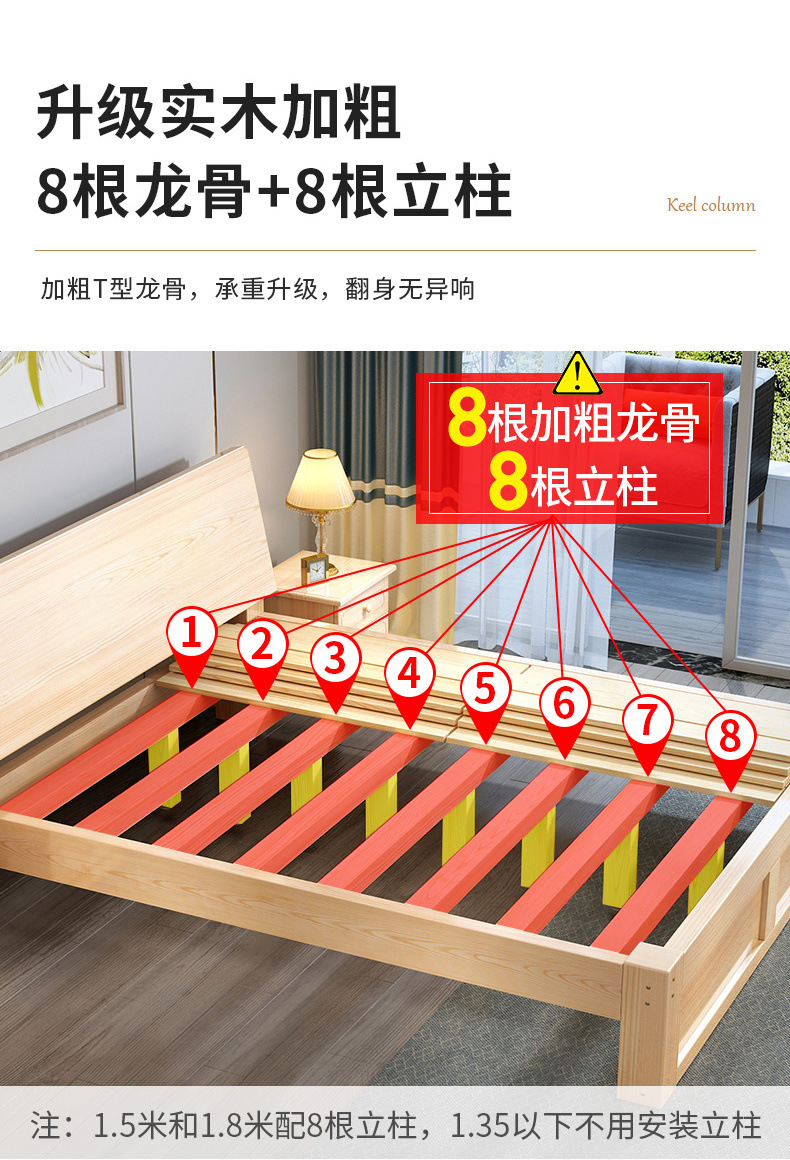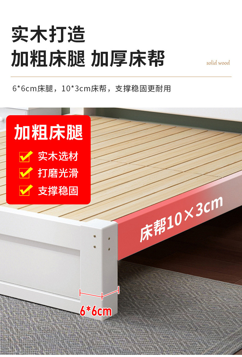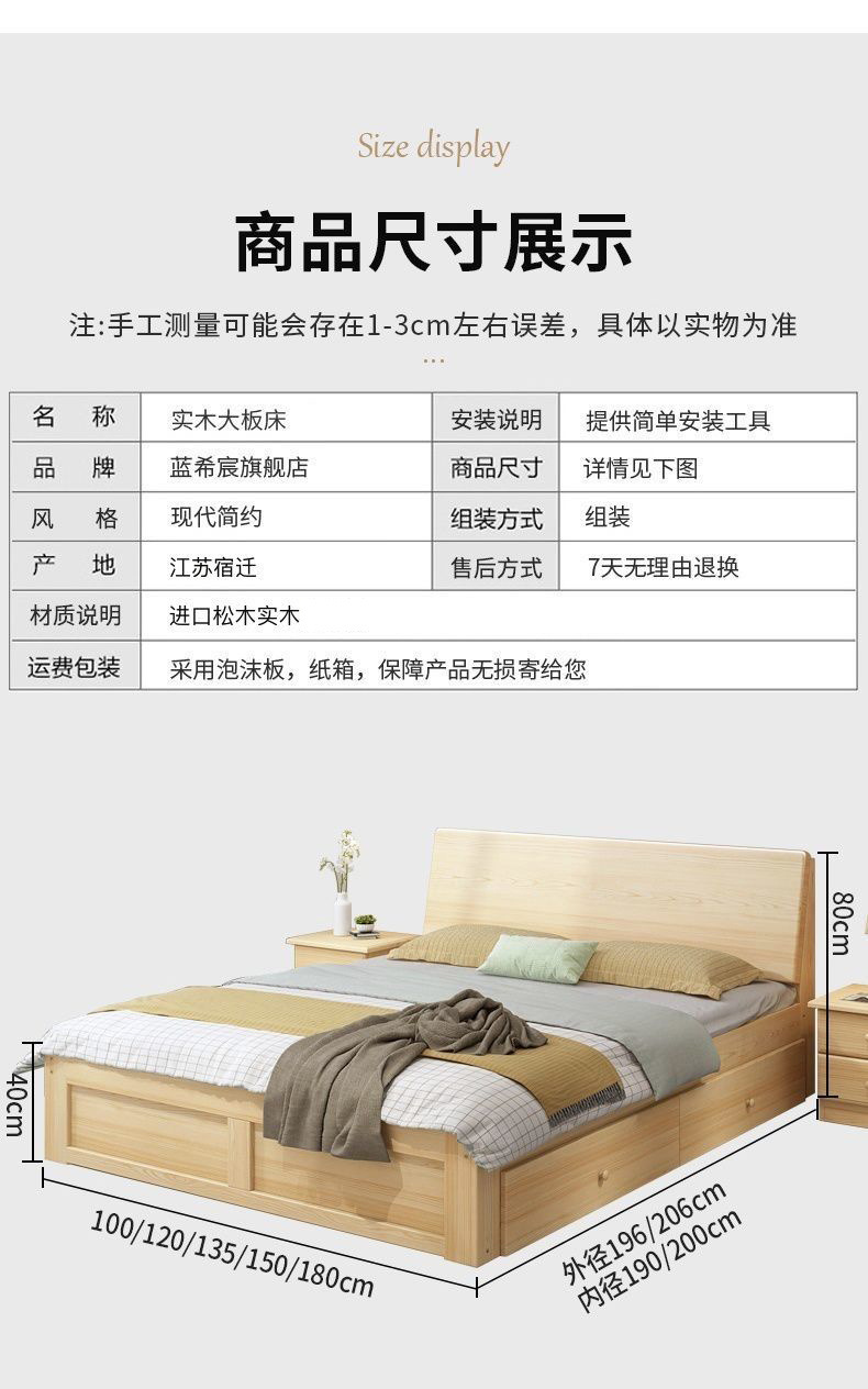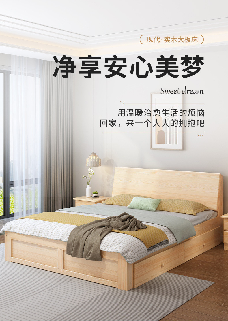 無垢材ベッド 1.5m シンプルダブルベッド 1.8m 家庭用マスターベッドルーム 経済的 1m シンプルレンタルルーム シングルベッド