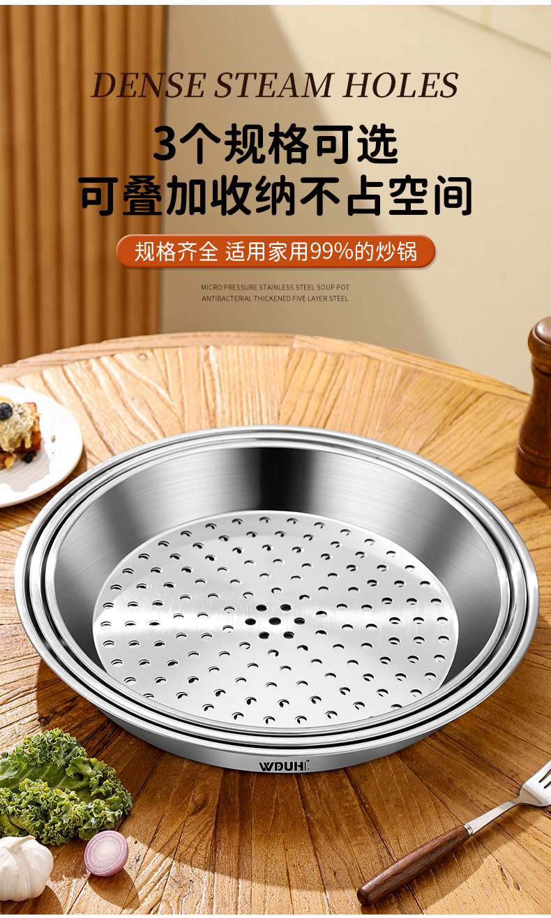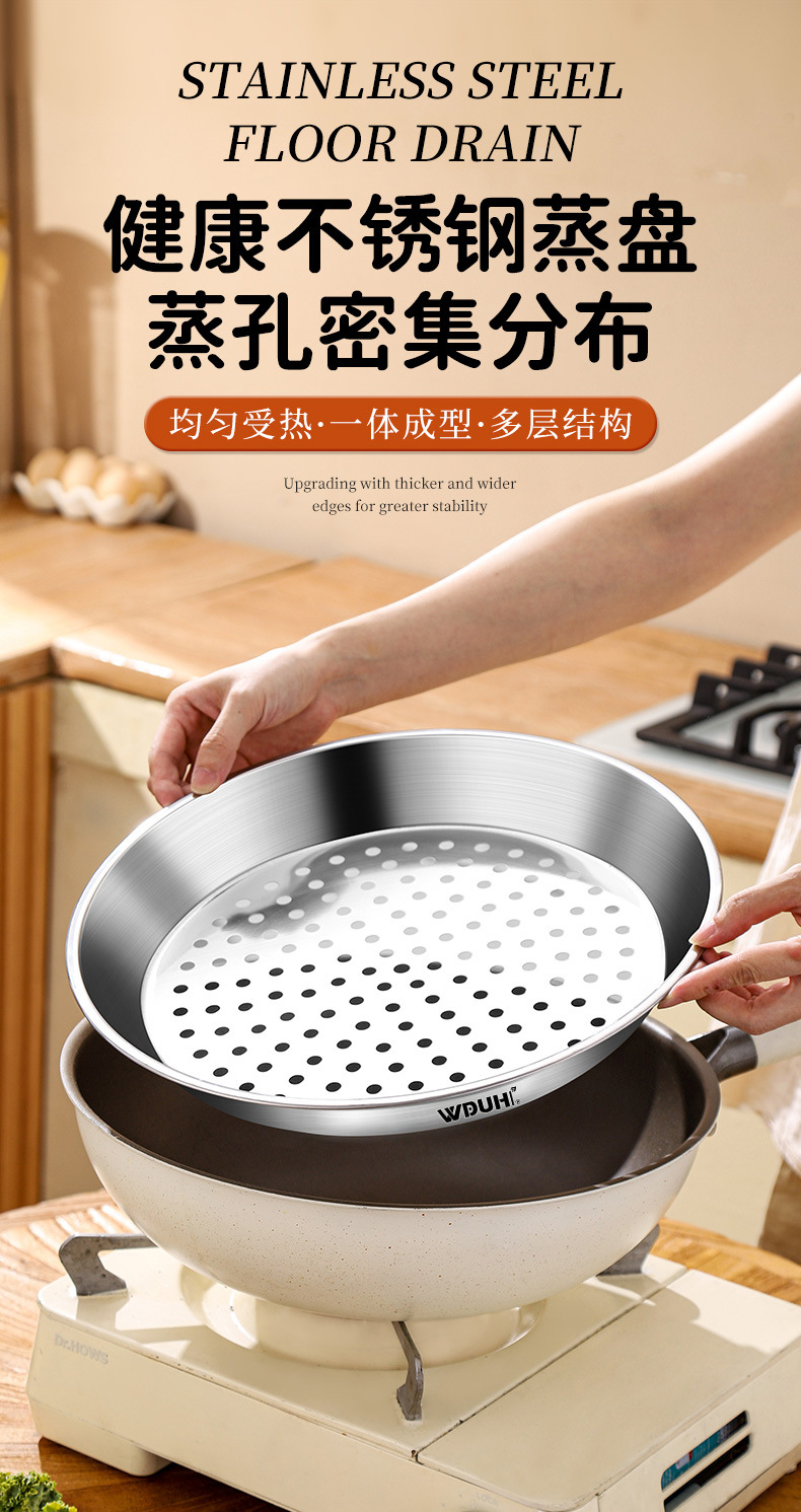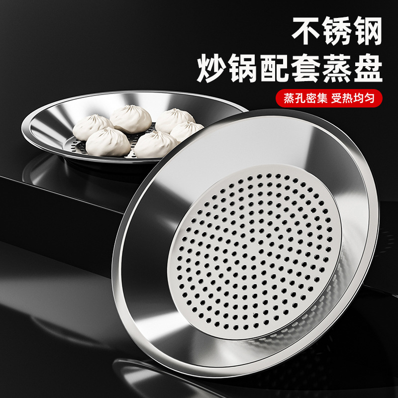炒锅蒸盘家用不锈钢加厚耐高温易清洗蒸孔密集多功能隔水蒸架蒸笼