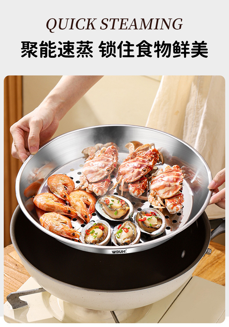 德国品质316炒锅专用不锈钢加厚耐高温易清洗多功能隔水蒸盘32cm