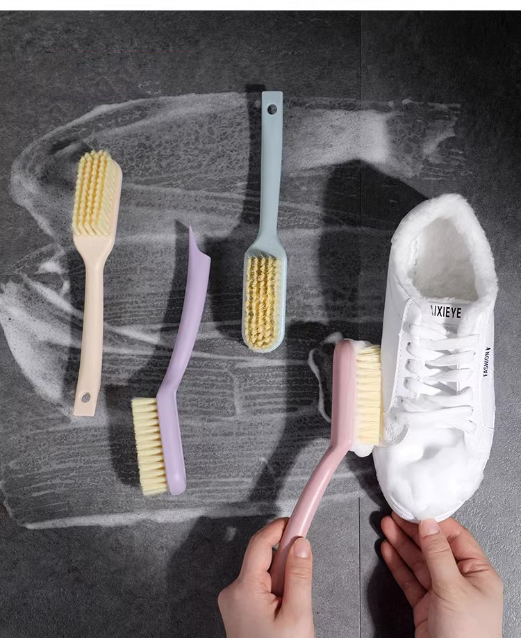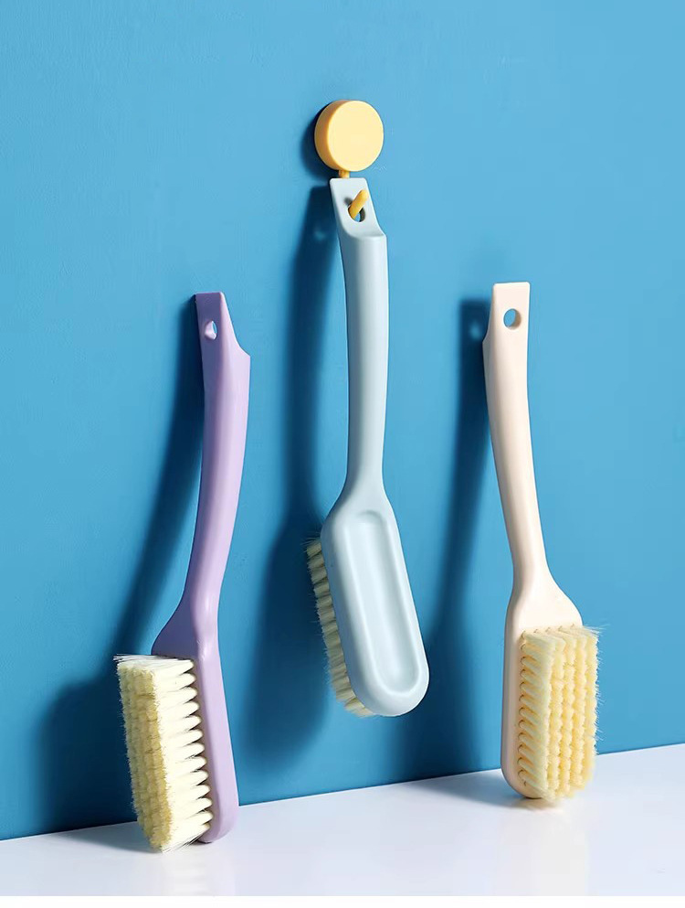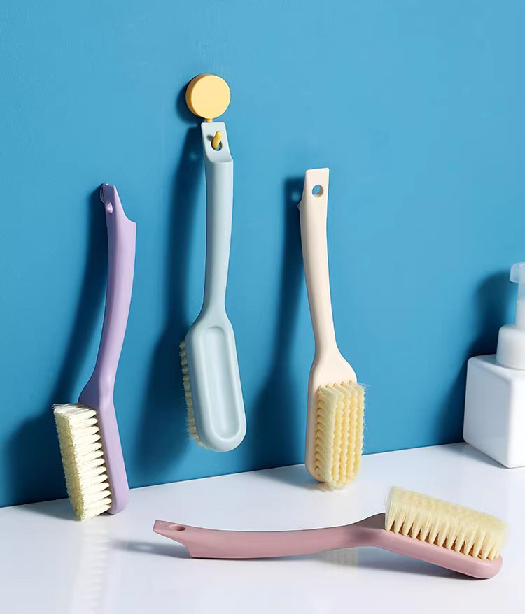 家庭用長柄靴ブラシ、吊り下げ可能なプラスチック靴洗いブラシ、靴を傷つけない多機能無地クリーニングブラシ、柔らかい毛クリーニングブラシ