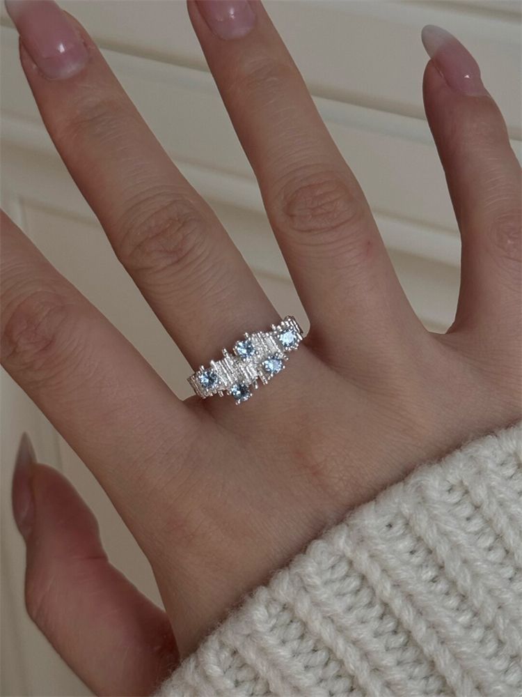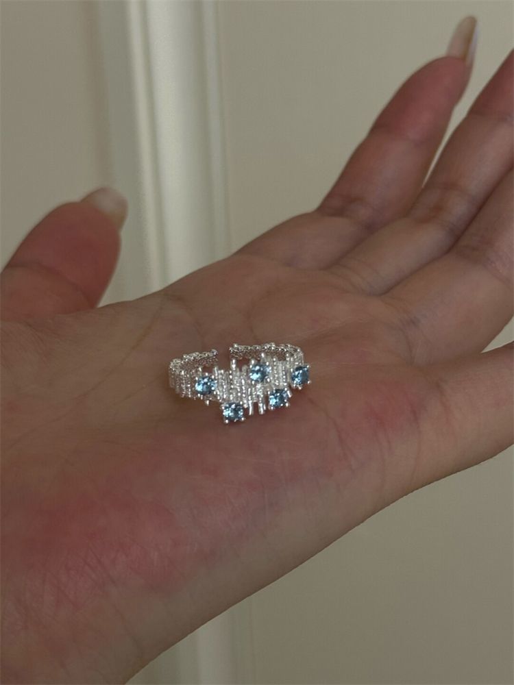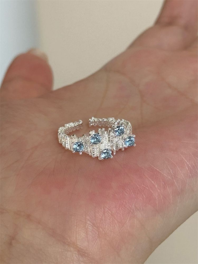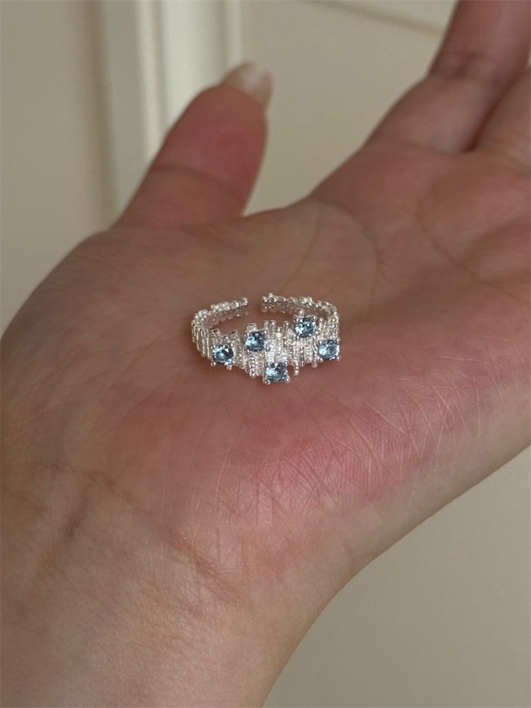 多用途でクールな不規則なブルーダイヤモンドオープンリング、女性用、絶妙でハイエンドのリング、ニッチなパーソナライズされたデザインの人差し指リング