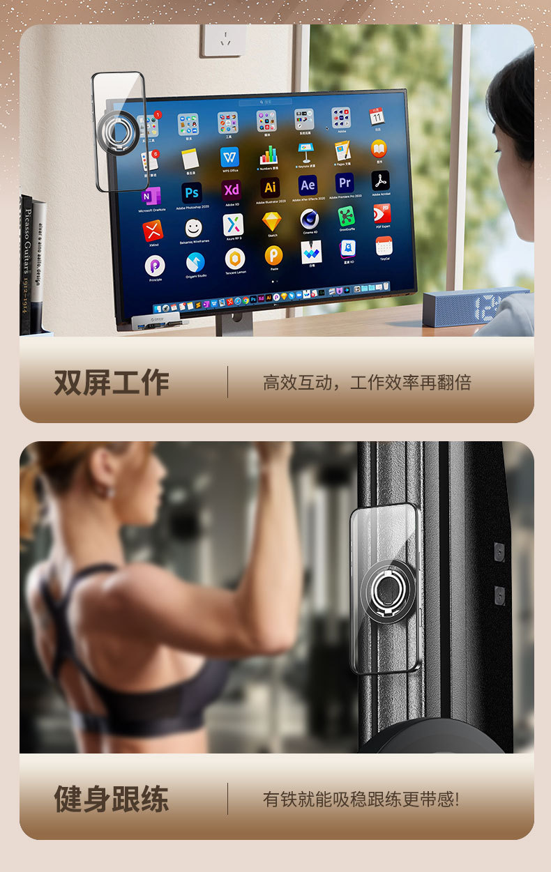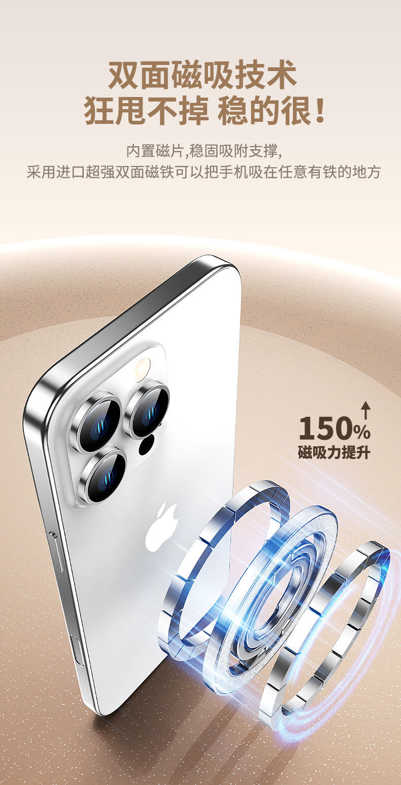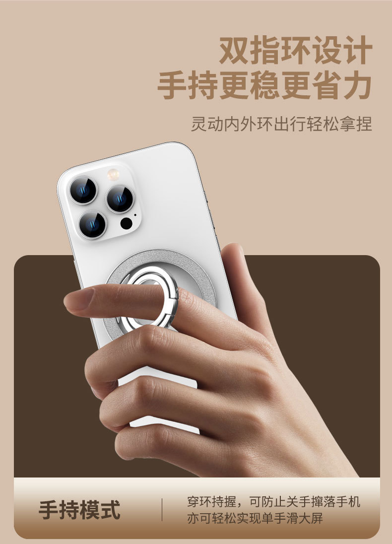 双磁吸 magsafe 强磁手机磁吸支架支撑架健身房车载通用 跨境新品