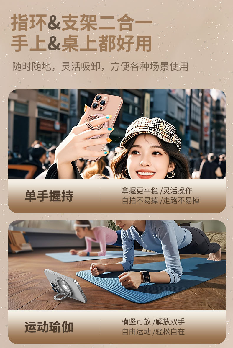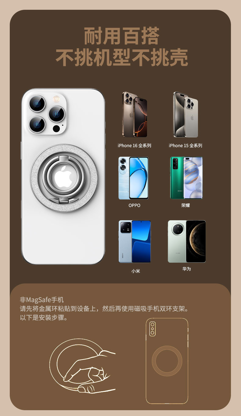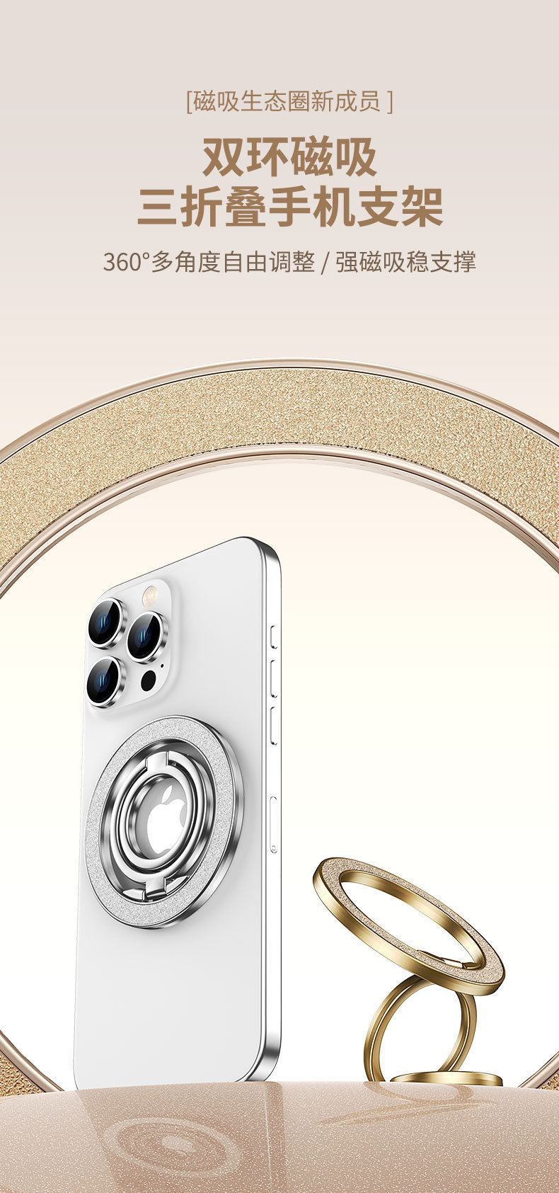 双磁吸 magsafe 强磁手机磁吸支架支撑架健身房车载通用 跨境新品