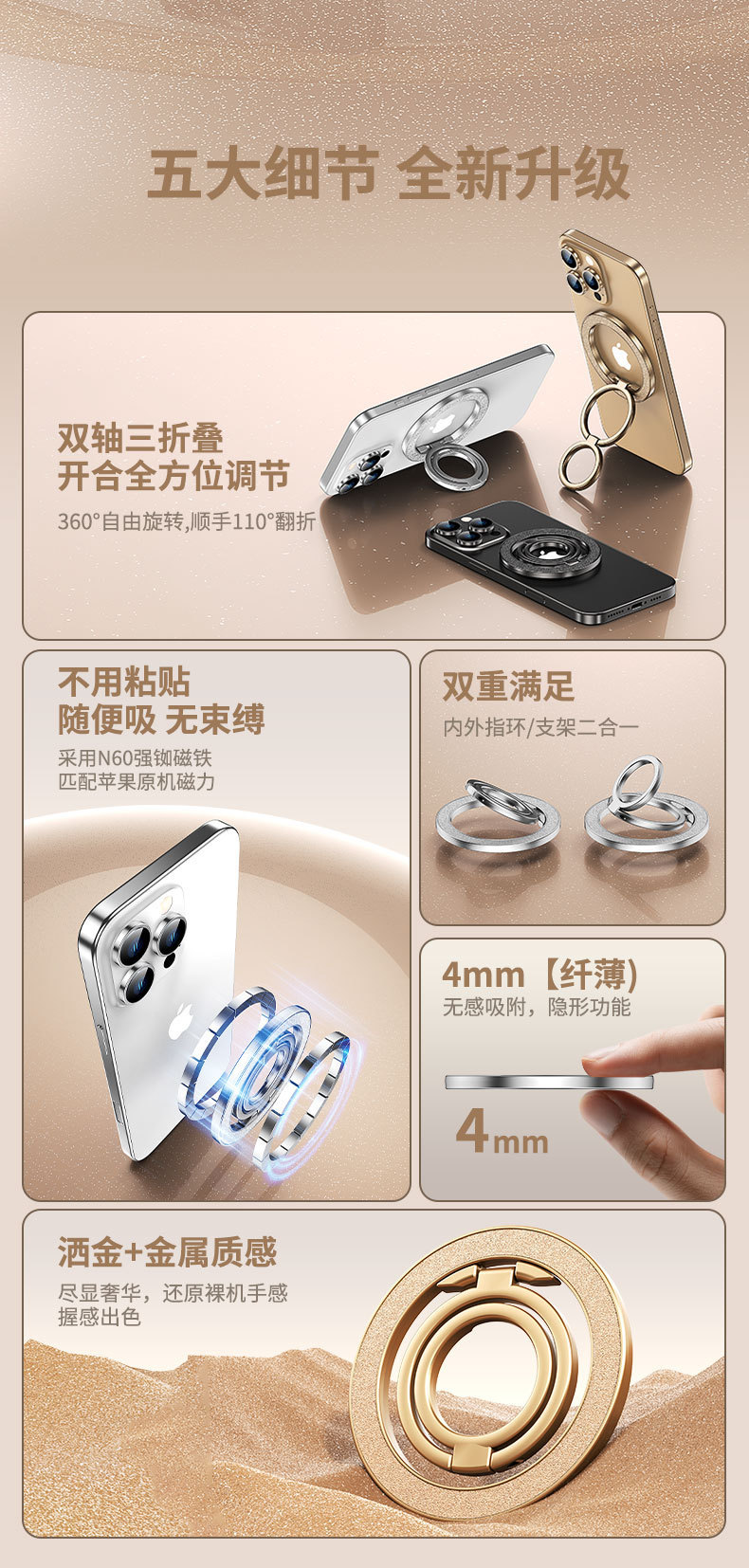 magsafe双面磁吸手机磁吸支架金属支架 合金材质轻薄造型厂家直供