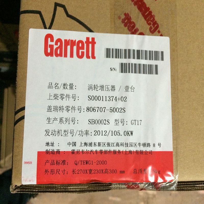 Garrett Huatai S00011374+02 GT17 806707-5002Y ターボチャージャー