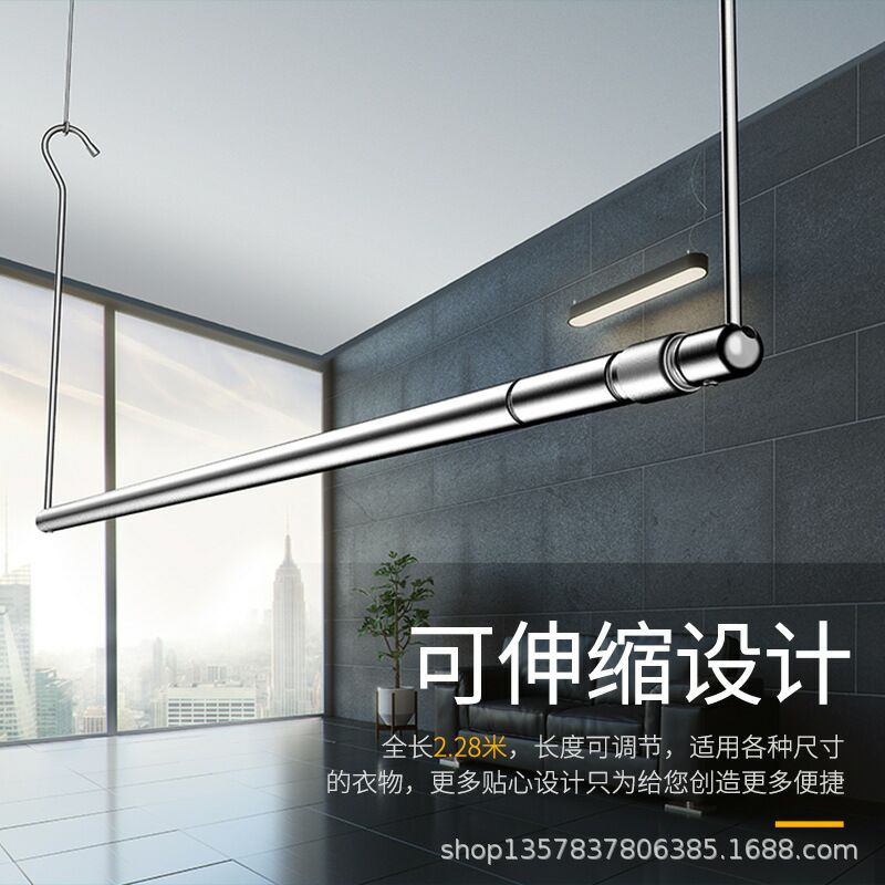 ベッドカバー乾燥バルコニー伸縮式物干しロッドシングルロッドステンレス鋼折りたたみ目に見えない物干しフック家庭用ベッドシーツ無料Nanzhou