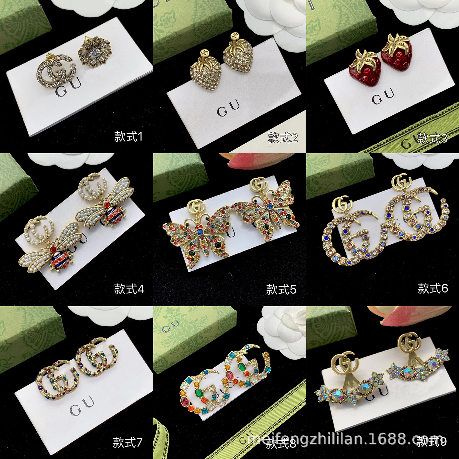 2025 新しいハイバージョン Dujia カラーダイヤモンドイヤリング DG 文字レトロフルダイヤモンド宮殿スタイルイヤリングセット真鍮女性