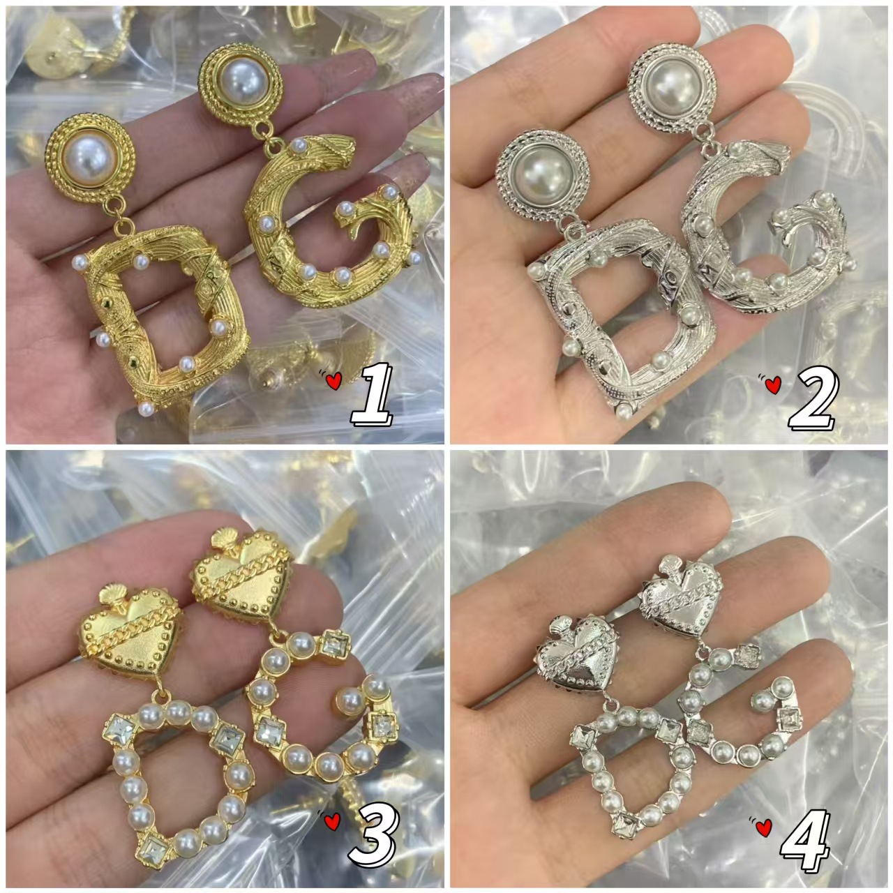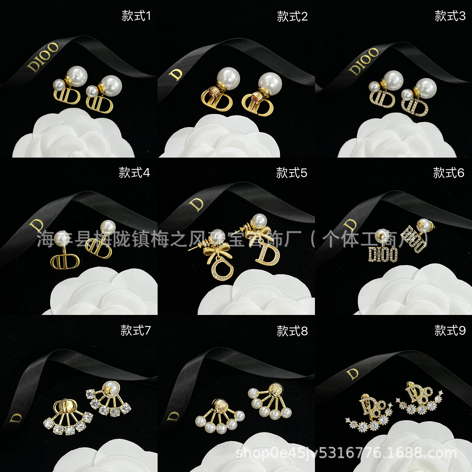 D某家クラシックパールイヤリングD某家CDレターレトロイヤリング女性用ハイバージョン真鍮素材工場直販