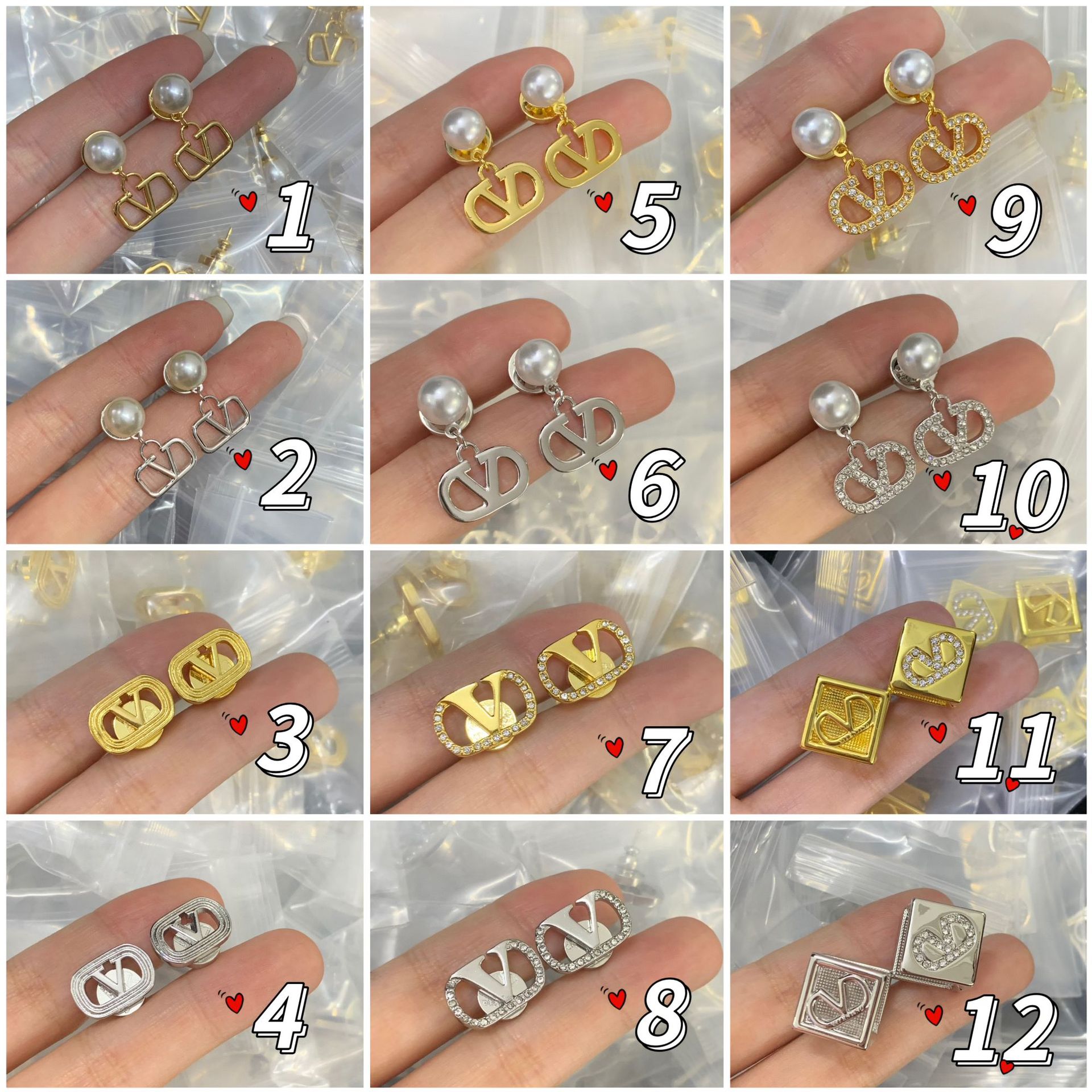 Huajia 高バージョン V 文字フルダイヤモンドイヤリング女性用真鍮 2025 ハルバートンの新しいイヤリング工場直販